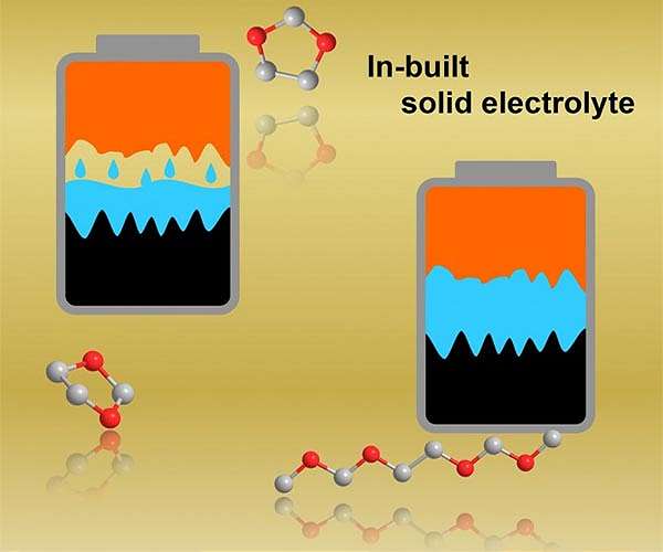 People don't ask too much from batteries: Deliver energy when it's needed and for as long as it is wanted, recharge quickly and don't burst into flames. A rash of cell phone fires in 2016 jolted consumer confidence in lithium-ion batteries, a technology that helped usher in modern portable electronics but has been plagued by safety concerns since it was introduced in the 1980s. As interest in electric vehicles revs up, researchers and industry insiders are searching for improved rechargeable battery technology that can safely and reliably power cars, autonomous vehicles, robotics and other next-generation devices. New Cornell research advances the design of solid-state batteries, a technology that is inherently safer and more energy-dense than today's lithium-ion batteries, which rely on flammable liquid electrolytes for fast transfer of chemical energy stored in molecular bonds to electricity. By starting with liquid electrolytes and then transforming them into solid polymers inside the electrochemical cell, the researchers take advantage of both liquid and solid properties to overcome key limitations in current battery designs. "Imagine a glass full of ice cubes: Some of the ice will contact the glass, but there are gaps," said Qing Zhao, a postdoctoral researcher and lead author on the study, "Solid-State Polymer Electrolytes With In-Built Fast Interfacial Transport for Secondary Lithium Batteries," published March 11 in Nature Energy. "But if you fill the glass with water and freeze it, the interfaces will be fully coated, and you establish a strong connection between the solid surface of the glass and its liquid contents," Qing said. "This same general concept in a battery facilitates high rates of ion transfer across the solid surfaces of a battery electrode to an electrolyte without needing a combustible liquid to operate." The key insight is the introduction of special molecules capable of initiating polymerization inside the electrochemical cell, without compromising other functions of the cell. If the electrolyte is a cyclic ether, the initiator can be designed to rip open the ring, producing reactive monomer strands that bond together to create long chain-like molecules with essentially the same chemistry as the ether. This now-solid polymer retains the tight connections at the metal interfaces, much like the ice inside a glass. Beyond their relevance for improving battery safety, solid-state electrolytes are also beneficial for enabling next-generation batteries that utilize metals, including lithium and aluminum, as anodes for achieving far more energy storage than is possible in today's state-of-the-art battery technology. In this context, the solid-state electrolyte prevents the metal from forming dendrites, a phenomenon that can short circuit a battery and lead to overheating and failure. Despite the perceived advantages of solid-state batteries, industry attempts to produce them at a large scale have encountered setbacks. Manufacturing costs are high, and the poor interfacial properties of previous designs present significant technical hurdles. A solid-state system also circumvents the need for battery cooling by providing stability to thermal changes. "Our findings open an entirely new pathway to create practical solid-state batteries that can be used in a range of applications," said senior author Lynden Archer, the James A. Friend Family Distinguished Professor of Engineering in the Smith School of Chemical and Biomolecular Engineering. According to Archer, the new in-situ strategy for creating solid polymer electrolytes is particularly exciting because it shows promise for extending cycle life and recharging capabilities of high-energy-density rechargeable metal batteries. "Our approach works for today's lithium ion technology by making it safer, but offers opportunity for future battery technology," Archer said.