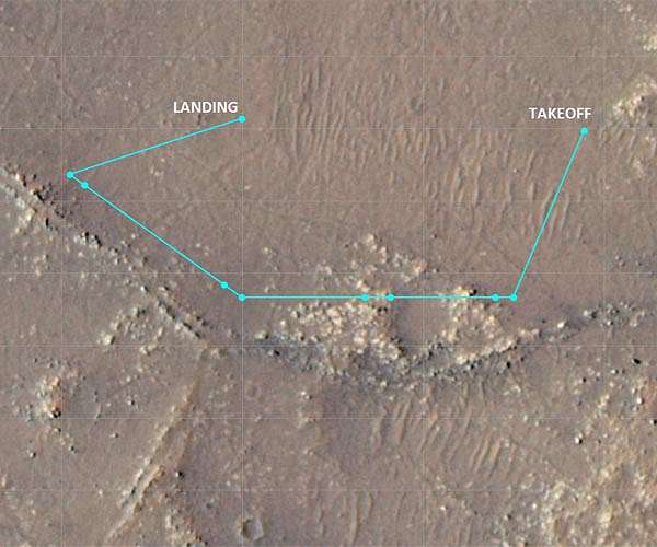 Ingenuity has come a long way from its original airfield, "Wright Brothers Field," which is 0.64 miles (1.04 kilometers) to the northeast of our current location. We got here during Flight 9, an endeavor that had our helicopter breaking several of our own records as we relocated to the far side of the "Seitah" geologic unit. Covering 2,051 feet (625 meters), Flight 9 was executed so that Ingenuity could provide valuable imagery and information for the Perseverance science team. Flight 10 will allow us to reap the benefits of our previous flight. Scheduled for no earlier than this Saturday (July 24), Flight 10 will target an area called the "Raised Ridges" (RR), named for the geographic features that start approximately 164 feet (50 meters) south-by-southwest of our current location. We will be imaging Raised Ridges because it's an area that Perseverance scientists find intriguing and are considering visiting sometime in the future. From navigation and performance perspectives, Flight 10 will be our most complex flight to date, with 10 distinct waypoints and a nominal altitude of 40 feet (12 meters). It begins with Ingenuity taking off from its sixth airfield and climbing to the new record height. It will then head south-by-southwest about 165 feet (50 meters), where upon hitting our second waypoint, take our first Return to Earth (RTE) camera image of the Raised Ridges, looking south. Next, we'll translate sideways to waypoint 3 and take our next RTE image - again looking south at Raised Ridges. Imagery experts at JPL hope to combine the overlapping data from these two images to generate one stereo image. Flying farther to the west, we'll try for another stereo pair of images (waypoints 4 and 5), then head northwest for two more sets of stereo pairs at waypoints 6 and 7 as well as 8 and 9. Then, Ingenuity will turn northeast, landing at its seventh airfield - about 310 feet (95 meters) west of airfield 6. Total time in the air is expected to be about 165 seconds. Ingenuity has survived 107 sols (Martian days) since deployment from Perseverance, 76 sols beyond the original technology demonstration mission it was designed for. It has also successfully executed two separate flight-software updates, improving the aircraft's ability to execute flights and capture color imagery (collecting 43 13 MP images to date). It's flown a total distance of 0.997 miles (1.605 kilometers), with total time aloft of 842 seconds (14 minutes, 2 seconds), in nine flights. Should we be successful, we'll cross the 1-mile total distance metric with Flight 10.
