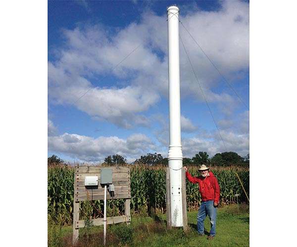Like most invasive species, when the soybean aphid arrived in the Midwest in 2000, it brought none of its natural enemies along for the ride. So, naturally, finding itself in the soybean capital of the world, the tiny insect went bonkers. Taking advantage of a nifty ability to reproduce without mating, populations exploded and the soybean aphid quickly became the number one insect pest affecting the crop. Scientists from the University of Illinois got to work almost immediately to track the pest's movement. They have been collecting soybean aphids throughout the Midwest for the past 18 years, but along the way, they learned a lot more than they expected. In a new report published in American Entomologist, the researchers share their insights. In 2001, David Voegtlin of the Illinois Natural History Survey set up the first in what would become a regional network of suction traps: PVC pipes extending 20 feet into the air above agricultural fields. Inside, a fan whirls and directs sucked-in insects down into a solution of water and antifreeze, which turns out to be an excellent preservative for bugs, microbes, and genetic material. For many of the past 18 years, 30-odd traps across the Midwest have been running continuously during daylight hours. And weekly, the contents of the trap are collected and sent to the USDA research lab at the U of I for analysis. That's where Doris Lagos-Kutz comes in. "There is so much we have learned about the soybean aphid, including spatial and temporal patterns of migration, and about other bugs found in the traps," says Lagos-Kutz, research associate in the USDA Agricultural Research Service and Department of Crop Sciences at the U of I, suction trap analyst, and co-author on the report. "Ultimately, data from the suction traps will help explain the factors that affect insect population dynamics on a continental scale." Glen Hartman, report co-author and soybean pathologist for the department and USDA-ARS, adds, "The pattern of aphid outbreaks often differs from year to year. By learning where the aphid outbreaks occur, we can associate that back to weather patterns, which could help us project the distribution of these insects under various weather and climate change scenarios." Because the traps don't discriminate, the scientists have been able to identify many other insects, including some that appear to be expanding their range due to climate change or habitat suitability. For example, in 2015, the traps allowed Lagos-Kutz to detect sugarcane aphid in Kansas and northern Wisconsin for the first time. Detection of the insect, usually only found in southern coastal regions in the U.S., could signal an early threat to sorghum, Miscanthus, and other economically important crops outside the sugarcane growing region. The traps have also captured cannabis aphids near industrial hemp operations; thrips, which can be vectors for crop-damaging viruses; and mosquitoes, an important vector of human diseases. Lagos-Kutz notes that the contents of the traps are preserved and available for investigation by other scientists, and hints that there's an untapped mine of information in the collection. "Using next-generation sequencing, we could potentially discover previously unknown organisms in these samples." Hartman says the traps could also provide information about the air microbiome and air pollutants. "We have a goldmine here. The traps collect all kind of things in the air, inert and biological. Who knows what other biological and chemical entities could be pulled out of these samples?" The ultimate aim is to find funding and collaborators to spread the suction trap network nationwide, and keep it going indefinitely. There's already a set of traps in the Pacific Northwest, but the two networks aren't formally linked. "We'd certainly like to have a bigger footprint. This is an extremely valuable source of information that extends well beyond agriculture," Hartman says. "It's the monitor for life in the air."