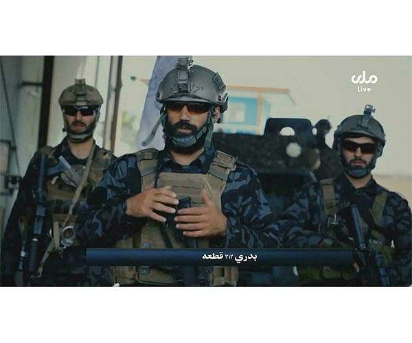 Surrounded by fragments of pottery and porcelain, a yellow barrel of explosives stands out alongside a red Honda motorbike encased in a glass box, propping up a rocket-propelled grenade launcher.