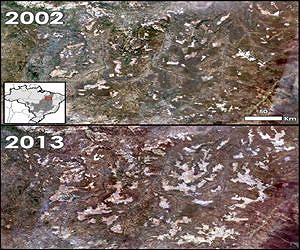 Agricultural expansion is quickly chewing up native vegetation in the vast wooded savannas of Brazil's Cerrado biome, and a new study shows that those changes in land use are altering the region's water cycle. "We've shown that cropland recycles less water annually back into the atmosphere than native Cerrado vegetation," said Stephanie Spera, a graduate student at Brown University in the department of Earth, Environmental and Planetary Science and a researcher at the Institute at Brown for Environment and Society (IBES). "As agriculture continues to expand, that could affect the rainfall regime that supports both natural vegetation and agricultural production." The study, which Spera led along with researchers from the University of Vermont and the Woods Hole Research Center, is published in the journal Global Change Biology. While the Brazilian Amazon has been the focus of intense conservation efforts, the neighboring Cerrado has received much less attention, Spera said. As a result, deforestation to make room for cropland has increased in the Cerrado, even as it has slowed significantly in the Amazon. Spera and her colleagues used a decade's worth of satellite data to document those land use changes in a Cerrado region called Matopiba, where a bulk of recent agricultural expansion has taken place. The data showed that agricultural land more than doubled in area, from 1.3 million hectares in 2003 to 2.5 million hectares in 2013, within the 45 million-hectare study area. Nearly three quarters of that expansion happened on land that had been host to intact native Cerrado vegetation. The researchers also used the satellite data to estimate the region's rate of evapotranspiration - the amount of water escaping soil and plant leaves that is recycled back into the atmosphere. The data showed that during the growing season, cropland recycles as much or slightly more water than native vegetation. But during the dry season, when the fields are fallow, evapotranspiration from agricultural land was an average of 60 percent lower than from native vegetation. As cropland continues to expand at the expense of Cerrado vegetation, the decrease in dry season water recycling could eventually impact the region's critical rainy season, which is responsible for the lion's share of Cerrado rains. "Modeling studies have shown that alteration of the regional water cycle during the dry season could affect both the timing and stability of the rainy season," Spera said. That has implications for both the natural vegetation and the continued viability of the region for agricultural production. "Timing of rains is a big deal," said Jack Mustard, a professor of earth, environmental and planetary sciences at Brown and co-author on the study. "This is nearly all rain-fed agriculture in this region. If you start delaying the onset of the rainfall, that has implications for what you can grow." But the impacts aren't necessarily confined to the Cerrado. Prevailing winds carry Cerrado air masses westward toward the Amazon, and the moisture within them contributes to rainfall there as well. "Half of the rainfall in the Amazon is recycled water," Spera said. "So a decrease in moisture in those air masses could cause a decrease in rainfall." The study also, however, identified a potential mitigating factor to the overall decrease in water recycling: double cropping. Double cropping is the planting of two crops in the same field in a single growing season. The study showed that, in terms of annual evapotranspiration, double-cropped land behaves more similarly to native vegetation. That's because double cropping effectively increases the length of the active growing season - the period during which cropland evapotranspiration rivals that of native vegetation. Double cropping increased from just 2 percent of cropland in 2003 to more than 26 percent in 2013. Without that increase in double cropping, the reduction of water recycling in croplands would have been as much as 25 percent worse, the study showed. The researchers suggest that policies that encourage double cropping could help to blunt the effect of agricultural expansion on the Cerrado water cycle. Other authors on the study were Gillian Galford (University of Vermont), Michael Coe (Woods Hole) and Marcia N. Macedo (Woods Hole). The work was funded by the NASA Land-Cover/Land-Use Change Program (NNX11AH91G and NNX11AE56G), a NASA Terrestrial Ecology grant (NNX12AK11G), and the Gordon and Betty Moore Foundation and a IBES fellowship.