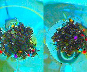 A team of scientists has found that a species of ant that clusters together to form rafts to survive floods exhibits memory and repeatedly occupies the same position during raft formation, according to a just published paper. The research shows that, like humans, ants work together to enhance their response to emergency situations with different members of the group carrying out different tasks. By working together, social insects, such as ants, achieve tasks that are beyond the reach of single individuals. A striking example is "self-assembly," a process in which ants link their bodies to form structures such as chains, ladders, walls or rafts. By studying self-assembly in ants, scientists are addressing broad biological and evolutionary questions such as why particular animals live in some environments but not others. Their findings set the stage for potential comparisons of ant "emergency responses" in different species from different environmental contexts. There are also indirect applications. The fields of swarm robotics and nanorobotics use ants and other social insects as models when they design 'cooperative' robots that may ultimately be used in medicine, for such things as clearing blood clots, or for fabrication of materials. The team of scientists, including Jessica Purcell, an assistant professor of entomology at The University of California, Riverside, focused on Formica selysi, an ant species found in floodplains in central and southern Europe. In a lab, they subjected groups of Formica selysi workers to two consecutive floods and monitored the position of individuals in rafts. Workers showed specialization in their positions when rafting, with the same individuals consistently occupying the top, middle, base or side position in the raft. In addition, they found the presence of brood, or immature members of the ant society, modified workers' position and raft shape. Surprisingly, they found workers' experience in the first rafting trial with brood influenced their behavior and raft shape in the subsequent trial without brood. They believe this is the first time memory has been demonstrated in so-called self-assemblages. "These elaborate rafts are some of the most visually stunning examples of cooperation in ants," Purcell said. "They are just plain cool. Although people have observed self-assemblages in the past, it's exciting to make new strides in understanding how individuals coordinate to build these structures." The work was published online in an article titled "Ant workers exhibit specialization and memory during raft formation," in the journal The Science of Nature. Purcell conducted the work while working as a post-doctoral researcher at the University of Lausanne in Switzerland. The co-authors of the paper are Amaury Avril and Michel Chapuisat, both of whom are at the University of Lausanne. The paper builds on a 2014 paper by the same group of scientists that found worker ants protected the most valuable nest mate, the queen, by placing her in the center of the raft. In contrast, worker ants placed the vulnerable brood at the base of the raft, taking advantage of their buoyancy to produce a sturdy raft and allowing groups to remain in a cohesive unit during floods. Workers and brood exhibited high survival rates after they rafted, which suggests that being immersed in water at the base of the raft is not as deadly as scientists expected.