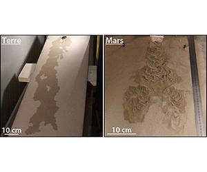 At present, liquid water on Mars only exists in small quantities as a boiling liquid, and only during the warmest time of day in summer. Its role has therefore been considered insignificant until now. However, an international team including scientists from the CNRS, Universite de Nantes and Universite Paris-Sud and headed by Marion Masse, from the Laboratoire de Planetologie et Geodynamique de Nantes (CNRS/Universite de Nantes)1 has now shown that even though water that emerges onto the surface of Mars immediately begins to boil, it creates an unstable, turbulent flow that can eject sediment and cause dry avalanches. The flow of small amounts of a boiling liquid therefore significantly alters the surface. The discovery of this exotic process, unknown on our planet, radically changes our interpretation of the Martian surface, making it difficult to undertake a direct comparison of flows on the Earth and on Mars. These findings are published on 2 May 2016 in the journal Nature Geoscience. It is well known that water boils at 100C. But this is only true at sea level, since boiling point depends on atmospheric pressure: the higher the altitude, the thinner the atmosphere, and the lower the boiling point. For instance, at the top of Mount Everest, water boils at 60C. But on Mars, where the atmosphere is much thinner than on Earth, it can boil at temperatures as low as 0C. During the Martian summer, when the subsurface water ice begins to melt and emerge at the surface, where the mean temperature reaches 20C, it immediately starts to boil. This is also the case for the flows of saline water discovered last year. So could an evaporating liquid alter the Martian landscape? To find out, a team of researchers from the Open University (UK) used a former diving decompression chamber to reproduce the low pressure of the Martian atmosphere. At the same time, another team from the GEOPS laboratory (CNRS/Universite Paris-Sud) carried out the same experiment, but this time in a cold chamber at Earth's atmospheric pressure. In both chambers, a block of pure water ice, followed by one of saline water ice, were melted at a temperature of 20C (as on Mars in summer) on a sand-covered slope. The experiments showed that, in the flows produced under terrestrial conditions, the water gradually seeped into the sand, leaving no trace on the surface after drying. However, what was observed in the Martian chamber was very different. The water produced by the melting ice started to boil as soon as it reached the surface, and the gas released caused the ejection of sand grains. These gradually formed small ridges at the front of the flow, which, as they grew larger, became unstable and actually produced avalanches of dry sand (video 1). The process was even more violent at lower pressures. Contrary to what is observed on Earth, the surface, once dry, therefore exhibited a series of ridges. This process is not as efficient in the case of saline water since it is more stable than pure water under Martian conditions. However, since saline water is more viscous, it can carry along sand grains and form small channels, a process that can sometimes become explosive under low pressure (video 3). These findings, analyzed along with other laboratories worldwide, including the Institut d'Astrophysique Spatiale (CNRS/Universite Paris Sud), provide new insight into the effect of the flow of water-whether saline or not-on the surface of Mars. Far from making its action insignificant, the water's instability considerably increases its impact on surface morphology. This broadens the potential range of processes that could explain the activity on the Martian surface, such as that observed in spring on the planet's slopes during the melt of winter frost made up of CO2 and water ice, as well as the dark flows (Recurring Slope Lineae) seen in summer. The possible presence of liquid water on the surface of Mars is a key question in the search for environments potentially favorable to life. Until now, detecting liquid water depended on identifying morphologies similar to those produced on Earth by the flow of liquid water, such as channels, gullies, or simply the seasonal appearance of dark traces caused by dampening of the surface. However the flows produced in the laboratory show that morphologies produced under either Martian or terrestrial conditions are very different. Direct comparison between landforms produced on Earth and on Mars does not therefore appear to be appropriate for detecting the appearance of a liquid on Mars, thus altering our interpretation of the Martian surface. Transport processes induced by metastable boiling water under Martian surface conditions, M. Masse, S. J. Conway, J. Gargani, M. R. Patel, K. Pasquon, A. McEwen, S. Carpy, V. Chevrier, M. R. Balme, L. Ojha, M. Vincendon, F. Poulet, F. Costard and G. Jouannic. Nature Geoscience, 2 May 2016. DOI : 10.1038/NGEO2706