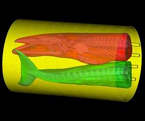 Scientists use rocket scanner to learn how whales hear Washington DC (SPX) Apr 24, 2018 Researchers have used a scanner designed for rockets to collect the first-ever computed tomography (CT) scan of an entire minke whale. By combining the CT scan results with custom-developed computer simulation tools, the researchers model how the whales hear sounds produced by other whales or by human-created (anthropogenic) sources such as ship propellers. CT, a common tool in in medical diagnostics, uses a special type of x-ray technology to take cross-sectional pictures of an organism or object ... read more