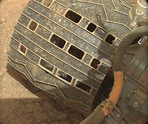 On a usual week of Curiosity operations, Friday plans take the longest since they span the whole weekend. This rare Monday morning, however, we're planning five sols to start covering Tuesday - Monday of operations so the team can spend Thanksgiving on Earth. When we plan a large chunk of sols like this, the first couple sols are lightweight with minimal risk activities from environmental sensors like RAD and REMS. This time those are Sols 3660 and 3661, so Tuesday and Wednesday will be pretty quiet in Gale while we catch up on downlinking old data. Any remote sensing activities from instruments like Mastcam and ChemCam will kick off on the third sol (Thursday), and for safety reasons we're waiting until the last sol (Saturday) to plan any arm activities. For example, any faults that occurred wouldn't be mitigated until at least Tuesday, and it would not be ideal for MAHLI to be stuck with her dust cover open near the surface for sols at a time! As part of the MAHLI uplink team today I was aware of this constraint and knew we'd have only a single sol available for planning today. We began planning with news of a successful ~46 meter drive back towards the Mount Sharp Ascent Route (MSAR) from our detour to image the Gediz Vallis Ridge (GVR). Probably the last view of the GVR we'll have for quite some time, the past few weeks were spent taking lots of Mastcam images and ChemCam Remote Micro-Images (RMIs). Abby Fraeman wrote about the reasoning behind this detour in the Veteran's Day blog from 10 days ago. Since we're now traversing on a "paved" road back to the MSAR and Marker Band valley, the weekend drive was easier to plan and even included Full MAHLI Wheel Imaging (FMWI). This is when we get MAHLI out during the drive and image all wheels from five small bumps, something we haven't done since June. Last plan's mobility Rover Planner, Keri Bean, described the process behind Full MAHLI Wheel Imaging and why we do them in the last blog. Taking a look at this weekend's downlink, it's amazing to see what over 29 kilometers and 10 years on Mars can do: MAHLI image of our left middle wheel! The engineers will analyze these images in the coming days, but their last analysis suggested we should be able to drive many more kilometers on these wheels. The first opportunity for remote sensing is on Sol 3662 and includes ~60 Mastcam stereo frames of our view back to the MSAR and hills beyond Marker Band valley. ChemCam is taking the early opportunity and shooting five laser spots on our workspace block at a target named "Urutai," as well as an RMI of the GVR while we still have the view. Sol 3663 has more opportunities for remote sensing and kicks off with a second round of ChemCam laser spots on another workspace block target named "Lontra" and another RMI of dry channels in the distance near the GVR. Mastcam will follow with 20 more stereo frames of our nearby rock textures and tones before sunset (reminder that sunsets on Mars are blue!!). Finally, Sol 3664 is where things really get moving with a third nearby ChemCam laser target "Purue," yet another RMI of distant hills from our past, and the arm activities. Our arm activities include using our Dust Removal Tool (DRT) on a bright vein target named "Poraque" and letting APXS sniff the dust-cleared spot after MAHLI images it from ~25, 5, and 2 cm away. We're also prepping a target named "Los Tranques" for DRT in tomorrow's plan by getting 25 cm and 5 cm MAHLI images before letting APXS sniff it, dust and all. Mastcam is also included in the arm activities today for imaging her cousin camera MAHLI. Every ~120 sols or so MAHLI requests Mastcam high-resolution images of MAHLI's dust cover. These images are some of the highest resolution Mastcam is capable of at ~1.6 meters away for focus. Check out this one from Sol 3541! Since Martian dust is magnetic, these images also show how much dust is accumulating on the cover's magnet over time. Tomorrow we'll be planning the last two sols of our holiday weekend, Sunday and Monday, which includes a drive away from our Thanksgiving site and resumption of our normal planning schedule. I'll be blogging on our first plan back next Monday as well, and on a personal note I'm feeling very thankful for this incredible mission I get to be a part of and my team members who inspire me every sol. I'll be thinking of our hardy rover all weekend as I watch Mars rise in the east each night, somehow feeling close even at 52 million miles away.