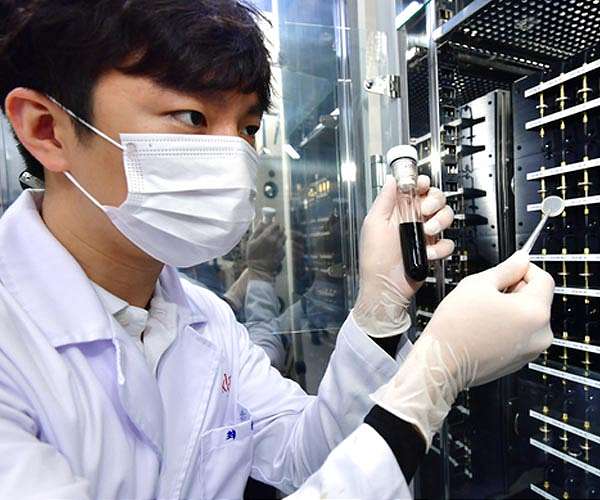 When its batteries are fully charged, an electronic device will normally indicate that they are at 100% capacity. However, this value only represents 70-90% of the theoretical energy density that can be stored in the batteries, owing to the permanent loss of Li ions that occurs during the initial charge in the stabilization (formation) stage of battery production. By preventing this initial loss of Li ions, the mileage of electric vehicles (EVs) and usage time of smartphones can be drastically increased. In an effort to overcome this issue, a joint research team at the Korea Institute of Science and Technology (KIST), led by Dr. Minah Lee from the Center for Energy Storage Research, Dr. Jihyun Hong from the Center for Energy Materials Research, and Dr. Hyangsoo Jeong from the Center for Hydrogen-Fuel Cell Research, has developed an electrode pre-treatment solution capable of minimizing this initial Li ion loss in graphite-silicon oxide (SiOx, 0.5 = x = 1.5) composite anodes. After being dipped in the solution, the anode, which was composed of 50% SiOx, demonstrated negligible Li loss, enabling a full cell to exhibit near-ideal energy density. While most commercial Li batteries utilize a graphite anode, SiOx has been garnering significant attention as a next-generation material for anodes due to its high capacity, which is 5-10 times greater than graphite. Yet, SiOx also irreversibly consumes three times as much active Li as graphite. As a result, a composite electrode, consisting of a mixture of graphite and SiOx, is now gaining recognition as an alternative for practical next-generation anodes. However, while there was a corresponding increase in the capacity of graphite-SiOx composite electrodes at higher ratios of SiOx, there was also an increase in loss of initial Li. Consequently, the ratio of SiOx content in a graphite-SiOx composite electrode was limited to 15%, as increasing the ratio to 50% would result in an initial Li loss of 40%. To simultaneously achieve high capacity and high initial efficiency, scientists proposed various prelithiation methods involving the pre-doping of extra Li into the anode. Dr. Minah Lee's research team at KIST developed a process wherein the electrode is dipped into a unique solution to mitigate Li consumption by the SiOx electrode. The team then applied this process to a graphite-SiOx composite material with significant commercialization potential. The research team found that the pre-treatment solutions developed previously would cause the unintended insertion of solvent molecules with Li ions into the graphite, owing to the graphite's versatile intercalation capability. This intercalation of large solvent molecules resulted in the structural breakdown of the graphite-SiOx composite electrode. To prevent electrode failure, the researchers developed a new solution using a weakly solvating solvent to reduce the interaction between the solvent and the Li ions. This solution enabled the selective insertion of Li ions into the active materials, ensuring a stable supply of additional Li to the graphite-SiOx composite electrode. The initial Li consumption was completely prevented after the graphite-SiOx electrode was immersed in the solution developed by the research team for approximately 1 minute, even at a 50% SiOx ratio. Consequently, the electrode showed a high initial efficiency of nearly 100%, indicating negligible Li loss (= 1%) in the initial charge. Electrodes developed through this process had a capacity 2.6 times higher than conventional graphite anodes, while also maintaining 87.3% of the initial capacity after 250 charge-/discharge cycles. Dr. Minah Lee from KIST gave the following statement: "As a result of this study, we should be able to increase the SiOx content in graphite-SiOx composite anodes to over 50%, as opposed to the 15% ratio allowed by conventional materials, making it possible to produce lithium ion batteries with a greater capacity and improve the mileage of future EVs." Dr. Jihyun Hong, a co-researcher at KIST, also said, "The technology is safe and suitable for mass production, and therefore is likely to be commercialized."