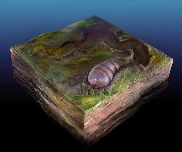 A team led by UC Riverside geologists has discovered the first ancestor on the family tree that contains most familiar animals today, including humans. The tiny, wormlike creature, named Ikaria wariootia, is the earliest bilaterian, or organism with a front and back, two symmetrical sides, and openings at either end connected by a gut. The paper is published in Proceedings of the National Academy of Sciences. The earliest multicellular organisms, such as sponges and algal mats, had variable shapes. Collectively known as the Ediacaran Biota, this group contains the oldest fossils of complex, multicellular organisms. However, most of these are not directly related to animals around today, including lily pad-shaped creatures known as Dickinsonia that lack basic features of most animals, such as a mouth or gut. The development of bilateral symmetry was a critical step in the evolution of animal life, giving organisms the ability to move purposefully and a common, yet successful way to organize their bodies. A multitude of animals, from worms to insects to dinosaurs to humans, are organized around this same basic bilaterian body plan. Evolutionary biologists studying the genetics of modern animals predicted the oldest ancestor of all bilaterians would have been simple and small, with rudimentary sensory organs. Preserving and identifying the fossilized remains of such an animal was thought to be difficult, if not impossible. For 15 years, scientists agreed that fossilized burrows found in 555 million-year-old Ediacaran Period deposits in Nilpena, South Australia, were made by bilaterians. But there was no sign of the creature that made the burrows, leaving scientists with nothing but speculation. Scott Evans, a recent doctoral graduate from UC Riverside; and Mary Droser, a professor of geology, noticed miniscule, oval impressions near some of these burrows. With funding from a NASA exobiology grant, they used a three-dimensional laser scanner that revealed the regular, consistent shape of a cylindrical body with a distinct head and tail and faintly grooved musculature. The animal ranged between 2-7 millimeters long and about 1-2.5 millimeters wide, with the largest the size and shape of a grain of rice - just the right size to have made the burrows. "We thought these animals should have existed during this interval, but always understood they would be difficult to recognize," Evans said. "Once we had the 3D scans, we knew that we had made an important discovery." The researchers, who include Ian Hughes of UC San Diego and James Gehling of the South Australia Museum, describe Ikaria wariootia, named to acknowledge the original custodians of the land. The genus name comes from Ikara, which means "meeting place" in the Adnyamathanha language. It's the Adnyamathanha name for a grouping of mountains known in English as Wilpena Pound. The species name comes from Warioota Creek, which runs from the Flinders Ranges to Nilpena Station. "Burrows of Ikaria occur lower than anything else. It's the oldest fossil we get with this type of complexity," Droser said. "Dickinsonia and other big things were probably evolutionary dead ends. We knew that we also had lots of little things and thought these might have been the early bilaterians that we were looking for." In spite of its relatively simple shape, Ikaria was complex compared to other fossils from this period. It burrowed in thin layers of well-oxygenated sand on the ocean floor in search of organic matter, indicating rudimentary sensory abilities. The depth and curvature of Ikaria represent clearly distinct front and rear ends, supporting the directed movement found in the burrows. The burrows also preserve crosswise, "V"-shaped ridges, suggesting Ikaria moved by contracting muscles across its body like a worm, known as peristaltic locomotion. Evidence of sediment displacement in the burrows and signs the organism fed on buried organic matter reveal Ikaria probably had a mouth, anus, and gut. "This is what evolutionary biologists predicted," Droser said. "It's really exciting that what we have found lines up so neatly with their prediction."