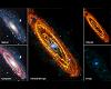 This mosaic of the Andromeda spiral galaxy highlights explosive stars in its interior, and cooler, dusty stars forming in its many rings. The image is a combination of observations from the Herschel Space Observatory taken in infrared light (seen in orange hues), and the XMM-Newton telescope captured in X-rays (seen in blues). NASA plays a role in both of these European Space Agency-led missions. Herschel provides a detailed look at the cool clouds of star birth that line the galaxy's five concentric rings. Massive young stars are heating blankets of dust that surround them, causing them to glow in the longer-wavelength infrared light, known as far-infrared, that Herschel sees. In contrast, XMM-Newton is capturing what happens at the end of the lives of massive stars. It shows the high-energy X-rays that come from, among other objects, supernova explosions and massive dead stars rotating around companions. These X-ray sources are clustered in the center of the galaxy, where the most massive stars tend to form. Andromeda is our Milky Way galaxy's nearest large neighbor. It is located about 2.5 million light-years away and holds up to an estimated trillion stars. Our Milky Way is thought to contain about 200 billion to 400 billion stars.