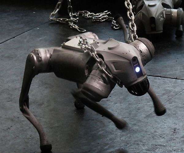 For his installation, titled "Dynamics of a Dog on a Leash" and first shown last year, Todo purchased three robot canines made by Chinese startup Unitree, costing thousands of dollars each.