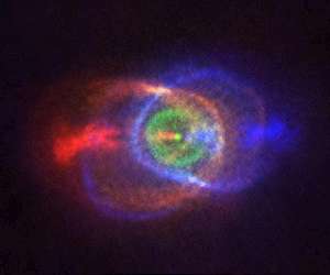 ALMA catches beautiful outcome of stellar fight Munich, Germany (SPX) Feb 06, 2020 Astronomers using the Atacama Large Millimeter/submillimeter Array (ALMA), in which ESO is a partner, have spotted a peculiar gas cloud that resulted from a confrontation between two stars. One star grew so large it engulfed the other which, in turn, spiralled towards its partner provoking it into shedding its outer layers. Like humans, stars change with age and ultimately die. For the Sun and stars like it, this change will take it through a phase where, having burned all the hydrogen in its core ... read more
