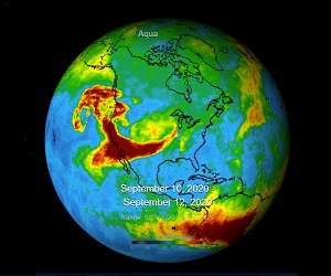 NASA monitors carbon monoxide from California wildfires Pasadena CA (JPL) Sep 15, 2020 NASA's Atmospheric Infrared Sounder (AIRS), aboard the Aqua satellite, captured carbon monoxide plumes coming from California wildfires last week. There were 28 major wildfires burning across the state as of Sept. 14. This includes the August Complex Fire, which started on Aug. 17 and has since burned over 471,000 acres, making it the largest fire on record in California. The animation shows three-day averages of carbon monoxide concentrations around 3 miles (5 kilometers) up in the atmosphere bet ... read more