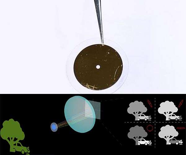 When the first full-length movie made with the advanced, three-color process of Technicolor premiered in 1935, The New York Times declared "it produced in the spectator all the excitement of standing upon a peak ... and glimpsing a strange, beautiful and unexpected new world." Technicolor forever changed how cameras - and people - saw and experienced the world around them. Today, there is a new precipice - this one, offering views of a polarized world. Polarization, the direction in which light vibrates, is invisible to the human eye (but visible to some species of shrimp and insects). But it provides a great deal of information about the objects with which it interacts. Cameras that see polarized light are currently used to detect material stress, enhance contrast for object detection, and analyze surface quality for dents or scratches. However, like the early color cameras, current-generation polarization-sensitive cameras are bulky. Moreover, they often rely on moving parts and are costly, severely limiting the scope of their potential application. Now, researchers at the Harvard John A. Paulson School of Engineering and Applied Sciences (SEAS) have developed a highly compact, portable camera that can image polarization in a single shot. The miniature camera - about the size of a thumb - could find a place in the vision systems of autonomous vehicles, onboard planes or satellites to study atmospheric chemistry, or be used to detect camouflaged objects. The research is published in Science. "This research is game-changing for imaging," said Federico Capasso, the Robert L. Wallace Professor of Applied Physics and Vinton Hayes Senior Research Fellow in Electrical Engineering at SEAS and senior author of the paper. "Most cameras can typically only detect the intensity and color of light but can't see polarization. This camera is a new eye on reality, allowing us to reveal how light is reflected and transmitted by the world around us." "Polarization is a feature of light that is changed upon reflection off a surface," said Paul Chevalier, a postdoctoral fellow at SEAS and co-author of the study. "Based on that change, polarization can help us in the 3D reconstruction of an object, to estimate its depth, texture and shape, and to distinguish man-made objects from natural ones, even if they're the same shape and color." To unlock that powerful world of polarization, Capasso and his team harnessed the potential of metasurfaces, nanoscale structures that interact with light at wavelength size-scales. "If we want to measure the light's full polarization state, we need to take several pictures along different polarization directions," said Noah Rubin, first author of the paper and graduate student in the Capasso Lab. "Previous devices either used moving parts or sent light along multiple paths to acquire the multiple images, resulting in bulky optics. A newer strategy uses specially patterned camera pixels, but this approach does not measure the full polarization state and requires a non-standard imaging sensor. In this work, we were able to take all of the optics needed and integrate them in a single, simple device with a metasurface." Using a new understanding how polarized light interacts with objects, the researchers designed a metasurface that uses an array of subwavelength spaced nanopillars to direct light based on its polarization. The light then forms four images, each one showing a different aspect of the polarization. Taken together, these give a full snapshot of polarization at every pixel. The device is about two centimeters in length and no more complicated than a camera on a smartphone. With an attached lens and protective case, the device is about the size of a small lunch box. The researchers tested the camera to show defects in injection-molded plastic objects, took it outside to film the polarization off car windshields and even took selfies to demonstrate how a polarization camera can visualize the 3D contours of a face. "This technology could be integrated into existing imaging systems, such as the one in your cell phone or car, enabling the widespread adoption of polarization imaging and new applications previously unforeseen," said Rubin. "This research opens an exciting new direction for camera technology with unprecedented compactness, allowing us to envision applications in atmospheric science, remote sensing, facial recognition, machine vision and more," said Capasso.