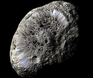 NASA's Cassini spacecraft will make its final close approach to Saturn's large, irregularly shaped moon Hyperion on Sunday, May 31. The Saturn-orbiting spacecraft will pass Hyperion at a distance of about 21,000 miles (34,000 kilometers) at approximately 6:36 a.m. PDT (9:36 a.m. EDT). Mission controllers expect images from the encounter to arrive on Earth within 24 to 48 hours. Mission scientists have hopes of seeing different terrain on Hyperion than the mission has previously explored in detail during the encounter, but this is not guaranteed. Hyperion (168 miles, 270 kilometers across) rotates chaotically, essentially tumbling unpredictably through space as it orbits Saturn. Because of this, it's challenging to target a specific region of the moon's surface, and most of Cassini's previous close approaches have encountered more or less the same familiar side of the craggy moon. Cassini scientists attribute Hyperion's unusual, sponge-like appearance to the fact that it has an unusually low density for such a large object - about half that of water. Its low density makes Hyperion quite porous, with weak surface gravity. These characteristics mean impactors tend to compress the surface, rather than excavating it, and most material that is blown off the surface never returns. Cassini's closest-ever Hyperion flyby took place on September 26, 2005, at a distance of 314 miles (505 kilometers). Cassini's next notable flyby after May 31 is slated for June 16, when the spacecraft will pass 321 miles (516 kilometers) above icy Dione. That flyby will represent the mission's penultimate close approach to that moon. In October, Cassini will make two close flybys of the active moon Enceladus, with its jets of icy spray, coming as close as 30 miles (48 kilometers) in the final pass. In late 2015, the spacecraft will again depart Saturn's equatorial plane - where moon flybys occur most frequently - to begin a year-long setup of the mission's daring final year. For its grand finale, Cassini will repeatedly dive through the space between Saturn and its rings.