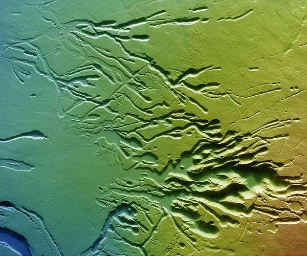 All of different age and origin, these features knit together to form a scene resembling trails of ink dispersing artfully in water, or a plant's beautifully complex root system as it digs down into soil.