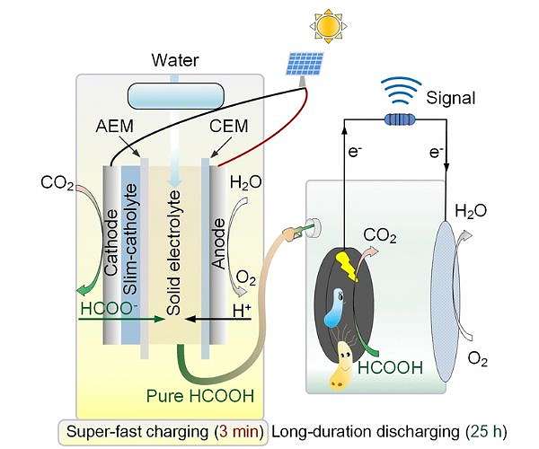 For the electrochemical process, an electrolysis cell was designed where inorganic catalysts efficiently converted carbon dioxide gas into formic acid. The team found that this part of the system could be charged within just a few minutes. Once the formic acid is produced, it is extracted and fed into the second stage of the system-the microbial fuel cell-where bacteria convert it back into carbon dioxide and electricity.