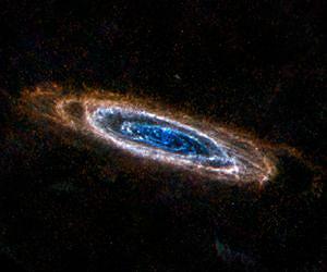 Two new eye-catching views from the Herschel space observatory are fit for a princess. They show the elegant spiral galaxy Andromeda, named after the mythical Greek princess known for her beauty. The Andromeda galaxy, also known as Messier 31, lies 2 million light-years away, and is the closest large galaxy to our own Milky Way. It is estimated to have up to one trillion stars, whereas the Milky Way contains hundreds of billions. Recent evidence suggests Andromeda's overall mass may in fact be less than the mass of the Milky Way, when dark matter is included. Herschel, a European Space Agency mission with important NASA contributions, sees the longer-wavelength infrared light from the galaxy, revealing its rings of cool dust. Some of this dust is the very coldest in the galaxy -- only a few tens of degrees above absolute zero. In both views, warmer dust is highlighted in the central regions by different colors. New stars are being born in this central, crowded hub, and throughout the galaxy's rings in dusty knots. Spokes of dust can also be seen between the rings. One view, seen here, is a mosaic of data from Herschel's Photodetecting Array Camera and Spectrometer (PACS) and spectral and photometric imaging receiver (SPIRE). The second view, seen here, shows data from only the SPIRE instrument, which captures the longest of wavelengths detectable by Herschel.