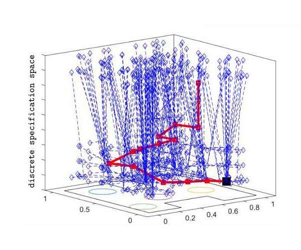 In one of the more memorable scenes from the 2002 blockbuster film Minority Report, Tom Cruise is forced to hide from a swarm of spider-like robots scouring a towering apartment complex. While most viewers are likely transfixed by the small, agile bloodhound replacements, a computer engineer might marvel instead at their elegant control system. In a building several stories tall with numerous rooms, hundreds of obstacles and thousands of places to inspect, the several dozen robots move as one cohesive unit. They spread out in a search pattern to thoroughly check the entire building while simultaneously splitting tasks so as to not waste time doubling back on their own paths or re-checking places other robots have already visited. Such cohesion would be difficult for human controllers to achieve, let alone for an artificial controller to compute in real-time. "If a control problem has three or four robots that live in a world with only a handful of rooms, and if the collaborative task is specified by simple logic rules, there are state-of-the-art tools that can compute an optimal solution that satisfies the task in a reasonable amount of time," said Michael M. Zavlanos, the Mary Milus Yoh and Harold L. Yoh, Jr. Associate Professor of Mechanical Engineering and Materials Science at Duke University. "And if you don't care about the best solution possible, you can solve for a few more rooms and more complex tasks in a matter of minutes, but still only a dozen robots tops," Zavlanos said. "Any more than that, and current algorithms are unable to overcome the sheer volume of possibilities in finding a solution." In a new paper published online on April 29 in the International Journal of Robotics Research, Zavlanos and his recent PhD graduate student, Yiannis Kantaros, who is now a postdoctoral researcher at the University of Pennsylvania, propose a new approach to this challenge called STyLuS*, for large-Scale optimal Temporal Logic Synthesis, that can solve problems massively larger than what current algorithms can handle, with hundreds of robots, tens of thousands of rooms and highly complex tasks, in a small fraction of the time. To understand the basis of the new approach, one must first understand linear temporal logic, which is not nearly as scary as it sounds. Suppose you wanted to program a handful of robots to collect mail from a neighborhood and deliver it to the post office every day. Linear temporal logic is a way of writing down the commands needed to complete this task. For example, these commands might include to visit each house in sequential order, return back to the post office and then wait for someone to retrieve the collected mail before setting out again. While this might be easy to say in English, it's more difficult to express mathematically. Linear temporal logic can do so by using its own symbols which, although might look like Klingon to the common observer, they're extremely useful for expressing complex control problems. "The term linear is used because points in time have a unique successor based on discrete linear model of time, and temporal refers to the use of operators such as until, next, eventually and always," said Kantaros. "Using this mathematical formalism, we can build complex commands such as 'visit all the houses except house two,' 'visit houses three and four in sequential order,' and 'wait until you've been to house one before going to house five.' " To find robot controllers that satisfy such complex tasks, the location of each robot is mapped into a discrete data point called a "node." Then, from each node, there exist multiple other nodes that are a potential next step for the robot. A traditional controller searches through each one of these nodes and the potential paths to take between them before figuring out the best way to navigate its way through. But as the number of robots and locations to visit increase, and as the logic rules to follow become more sophisticated, the solution space becomes incredibly large in a very short amount of time. A simple problem with five robots living in a world with ten houses could contain millions of nodes, capturing all possible robot locations and behaviors towards achieving the task. This requires a lot of memory to store and processing power to search through. To skirt around this issue, the researchers propose a new method that, rather than constructing these incredibly large graphs in their entirety, instead creates smaller approximations with a tree structure. At every step of the process, the algorithm randomly selects one node from the large graph, adds it to the tree, and rewires the existing paths between the nodes in the tree to find more direct paths from start to finish. "This means that as the algorithm progresses, this tree that we incrementally grow gets closer and closer to the actual graph, which we never actually construct," said Kantaros. "Since our incremental graph is much smaller, it is easy to store in memory. Moreover, since this graph is a tree, graph search, which otherwise has exponential complexity, becomes very easy because now we only need to trace the sequence of parent nodes back to the root to find the desired path." It had been long accepted that growing trees could not be used to search the space of possible solutions for these types of robot control problems. But in the paper, Zavlanos and Kantaros show that they can make it work by implementing two clever tricks. First, the algorithm chooses the next node to add based on information about the task at hand, which allows the tree to quickly approximate a good solution to the problem. Second, even though the algorithm grows trees, it can still detect cycles in the original graph space that capture solutions to such temporal logic tasks. The researchers show that this method will always find an answer if there is one, and it will always eventually find the best one possible. They also show that this method can arrive at tha