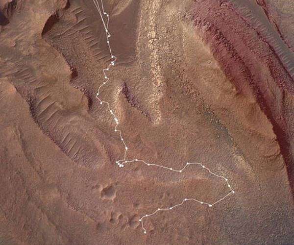 Instead of continuing to struggle with the original course, Schoelen and his colleagues put together a lateral detour, eyeing a spot roughly 492 feet (150 meters) away where the incline leveled out. At least, it seemed to: Planners rely on imagery from NASA's Mars Reconnaissance Orbiter to get a rough sense of the terrain, but images captured from space can't show exactly how steep a slope is or whether boulders are there.