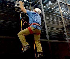 DARPA's Z-Man program has demonstrated the first known human climbing of a glass wall using climbing devices inspired by geckos. The historic ascent involved a 218-pound climber ascending and descending 25 feet of glass, while also carrying an additional 50-pound load in one trial, with no climbing equipment other than a pair of hand-held, gecko-inspired paddles. The novel polymer microstructure technology used in those paddles was developed for DARPA by Draper Laboratory of Cambridge, Mass. Historically, gaining the high ground has always been an operational advantage for warfighters, but the climbing instruments on which they're frequently forced to rely-tools such as ropes and ladders-have not advanced significantly for millennia. Not only can the use of such tools be overt and labor intensive, they also only allow for sequential climbing whereby the first climber often takes on the highest risk. DARPA created the Z-Man program to overcome these limitations and deliver maximum safety and flexibility for maneuver and rapid response to warfighters operating in tight urban environments. The goal of the program is to develop biologically inspired climbing aids to enable warfighters carrying a full combat load to scale vertical walls constructed from typical building materials. "The gecko is one of the champion climbers in the Animal Kingdom, so it was natural for DARPA to look to it for inspiration in overcoming some of the maneuver challenges that U.S. forces face in urban environments," said Dr. Matt Goodman, the DARPA program manager for Z-Man. "Like many of the capabilities that the Department of Defense pursues, we saw with vertical climbing that nature had long since evolved the means to efficiently achieve it. The challenge to our performer team was to understand the biology and physics in play when geckos climb and then reverse-engineer those dynamics into an artificial system for use by humans." Geckos can climb on a wide variety of surfaces, including smooth surfaces like glass, with adhesive pressures of 15-30 pounds per square inch for each limb, meaning that a gecko can hang its entire body by one toe. The anatomy of a gecko toe consists of a microscopic hierarchical structure composed of stalk-like setae (100 microns in length, 2 microns in radius). From individual setae, a bundle of hundreds of terminal tips called spatulae (approximately 200 nanometers in diameter at their widest) branch out and contact the climbing surface. A gecko is able to climb on glass by using physical bond interactions-specifically van der Waals intermolecular forces-between the spatulae and a surface to adhere reversibly, resulting in easy attachment and removal of the gecko's toes from the surface. The van der Waals mechanism implied that it is the size and shape of the spatulae tips that affect adhesive performance, not specific surface chemistry. This suggested that there were design principles and physical models derived from nature that might enable scientists to fabricate an adhesive inspired by gecko toes. Humans, of course, have much more weight to carry than a gecko. One of the initial challenges in developing a device to support human climbing was the issue of scaling: a typical Tokay gecko weighs 200 grams, while an average human male weighs 75 kilograms. To enable dynamic climbing like a gecko at this larger scale required that the engineers create climbing paddles capable of balancing sufficient adhesive forces in both the shear (parallel to the vertical surface) and normal (perpendicular to the vertical surface) directions. That feature is necessary for a climber to remain adhered on a surface without falling off while in the act of attaching and detaching the paddles with each movement. The Draper Laboratory team was also challenged to create novel micro- and nanofabrication technologies to produce the high-aspect-ratio microstructures found in the gecko toe. In the process of achieving that capability, the Z-Man performers transformed the fundamental design and development of reversible adhesives for potential biomedical, industrial, and consumer applications. The first human climbing demonstration occurred in February 2012 and tests of the technology are ongoing.