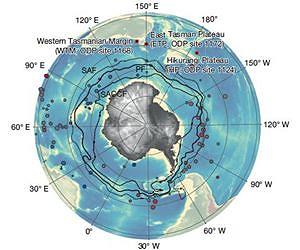 Trekking across the high Canadian Arctic almost 20 years ago, Howie Scher had an unexpected encounter that helped fix the course of his career. An undergraduate on a research expedition over summer break, Scher was part of a scientific group traveling deep into the Arctic Circle to collect basalt cores for paleomagnetic analysis. But as focused as the team was on finding rocks with magnetic minerals that can help establish where on Earth they had formed, it was stony deposits that had once been very much alive that really caught the team's collective eye. "We stumbled across a fossil bone bed there," Scher says. "We were pulling out vertebrate fossils--crocodilians, turtles, bony fish--and when we got home we showed them to a paleontologist who told us it was a warm water assemblage. That was a great experience as a freshman in college, and it got me very interested in climate--just seeing how it had been so different in the past than what my experience was near the North Pole, trudging through the snow." Now an associate professor at the University of South Carolina, Scher has made a career of climate science. He is part of an international team that recently published a report pinpointing the genesis of one of the cornerstones of the Earth's current climate system, the Antarctic Circumpolar Current. A constant eastward flow of ocean water in the Southern Ocean encircling Antarctica, the Antarctic Circumpolar Current is akin to the Gulf Stream, the current that moves water through the Atlantic Ocean from the tip of Florida, along the east coast of North America, and, by extension into the North Atlantic Current, to the shores of western and northern Europe. The Gulf Stream's transport of warm southern waters northward is why many European countries have more temperate climates than would be expected purely from their latitudes (relatively mild London, for example, lies more than 500 miles further north than Toronto). But if the Atlantic Circumpolar Current is something like the Gulf Stream, there's a notable difference: it's even bigger. "It's the largest ocean current today, and it's the only one that connects all the ocean basins," Scher says. "The Atlantic, Pacific and the Indian are huge oceans, but they're all bounded by continents; they have firm boundaries. The Southern Ocean, around Antarctica, is the only band of latitude where there's an ocean that goes continuously around the globe. Because of that, the winds that blow over the Southern Ocean are unimpeded by continental barriers. "So the distance that the wind can blow over the ocean, which as oceanographers we call the 'fetch,' is infinite. And fetch is one of the things that determines how high the waves are, how much mixing goes on in the oceans, and ultimately what drives surface ocean currents. With infinite fetch, you can have a very strong ocean current, and because this particular band of ocean connects all of the world's oceans, it transports heat and salt and nutrients all around the world." In a paper recently published in the journal Nature, Scher and his team make the case for just when this massive ocean current first started flowing. One straightforward obstacle in the distant past was the arrangement of continental masses. Antarctica and Australia were part of a single super-continent, Gondwana, and began to separate about 83 million years ago, so the Pacific and Indian Oceans couldn't have been in contact near the South Pole before then. It was much later than the initial separation of Australia and Antarctica that deep ocean currents could flow between the two continents, though. Paleoceanographers have identified a transition, the opening of the Tasmanian gateway, a deep-water channel between Tasmania and Antarctica, as being a necessary part of any large-scale, sustained flow on the order of the Antarctic Circumpolar Current. Using novel information about the separation of Antarctica and Australia, Scher and his team developed a tectonic model that showed that the Tasmanian gateway first developed at least 500 meters of depth some time between 35 and 32 million years ago. From geochemical analyses of sediment core, however, they concluded that the channel opening to that depth wasn't enough to get the Antarctic Circumpolar Current flowing. The Pacific Ocean is in contact with much younger rock than the Indian Ocean, Scher says, which leads to a distinguishing concentration in each ocean of one isotope of neodymium that has a half-life longer than that of the solar system. By measuring neodymium isotope compositions incorporated into fish teeth fossils in core samples, the team was able to establish that eastward current flow between the Pacific and Indian Oceans didn't begin until about 30 million years ago, some 2 to 5 million years after the Tasmanian gateway opened. Taking both geophysical and geochemical data into account, they conclude that although the Tasmanian gateway was wide enough to accommodate a deep current, the gateway was located too far south to be in contact with the mid-latitude trade winds, which are the driving force for today's eastward-flowing Antarctic Circumpolar Current. Instead, when the gateway first opened, water initially flowed westward, the opposite of that today, in keeping with the prevailing polar winds located at the more southern latitudes. Only as both continents, and the gateway between the two, drifted northward on their tectonic plates over the next several million years did alignment with the trade winds come about. That reversed the current flow, to the east, and the Antarctic Circumpolar Current was born. "It's the global mix-master of the oceans--that's a quote from Wally Broecker [of Columbia University's Lamont-Doherty Earth Observatory], and that's what it's been called by oceanographers for 50 years now," Scher says. "The Antarctic Circumpolar Current is the world's largest current today, it influences heat exchange and carbon exchange, and we really didn't