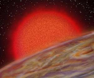Astronomers have found that the atmosphere of the hottest known exoplanet, the hot Jupiter-like planet KELT-9b, is "boiling off," with the escaping gas being captured by the host star. Using the CARMENES [1] instrument at Calar Alto Observatory, Fei Yan and Thomas Henning of the Max Planck Institute for Astronomy in Heidelberg were able to detect the escaping hydrogen atmosphere of the planet. Their observations indicate a spread-out hydrogen envelope that is being pulled towards the host star. By all definitions, KELT-9b is a hellish kind of exoplanet: Due to its proximity to an extremely hot host star, the planet itself is the hottest exoplanet yet discovered. Now Fei Yan and Thomas Henning of the Max Planck Institute for Astronomy have detected that planet's extended atmosphere, showing that the star is not only heating up the planet's hydrogen atmosphere - it is then using its gravity to pull the hydrogen onto itself. Specifically, the planet's host star KELT-9 is an extremely hot star with a temperature of up to 10,000 K (compare this with the Sun's much more modest 5,800 K, or 5,500 degrees Celsius). The planet's orbit is extremely small - ten times smaller than the orbit of Mercury in our solar system (corresponding to only about 3% of the diameter of Earth's orbit around the Sun). When the planet was discovered in 2017 by a team of astronomers led by B. Scott Gaudi (Ohio State University), the astronomers measured its day-side temperature to be at 4,600 K (4,300 degrees Celsius), which is hotter than many stars! The planet itself is a significantly larger version of our solar system's Jupiter, at almost 3 times Jupiter's mass and almost twice Jupiter's diameter. These properties combined place KELT-9b firmly in the class of what astronomers call "hot Jupiter." The planet's orbit regularly takes it between the host star and an observer on Earth - during each such transit, the planet blocks some of the starlight, causing the star to dim a little bit as measured by telescope on Earth. The planet was initially discovered by astronomers looking for that kind of regular little dip in the star's apparent brightness (the so-called transit method). When Yan and Henning observed KELT-9b using the CARMENES spectrograph installed at the 3.5 meter telescope at Calar Alto Observatory, they found traces of the planet's atmosphere: Whenever the planet was in front of its star, there would be a clear absorption line for hydrogen (H-alpha), a narrow wavelength region where the planet's hydrogen-rich atmosphere absorbs some of it's host star's bright light. CARMENES gives a particularly detailed, high-resolution view of stellar spectral making it an excellent tool for this kind of observation. The extended hydrogen atmosphere surrounding KELT-9b is surprisingly large - more than half as large again as the planet's radius. Models of how the star's gravity will pull on the planet's gas show that this is close to the maximal size of such an atmosphere. The large size suggests that the planet is losing hydrogen gas at a significant rate of more than 100,000 tons of hydrogen per second. The star is "boiling off" the planet's atmosphere, and pulling the gas onto itself, in a blatant case of interplanetary theft. The way the wavelength of the absorption line changes during the transit amounts to a rare direct detection of the planet's motion: the wavelength shift is due to the Doppler shift, which tells us how fast the planet is moving towards us or away from us. Fey Yan, lead author of the article, says: "This is a very special kind of measurement - this kind of direct measurement of planetary motion has only been possible for about half a dozen exoplanets so far." Thomas Henning, director at the MPIA and co-author of the study, says: "This planet reminds me of the mythical Icarus, who came to close to the Sun and crashed. Our planet will not crash, but it will certainly lose an essential part of itself, namely its atmosphere."