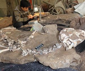A dinosaur fossil that almost went undiscovered is giving scientists valuable clues about a family of creatures that flourished just before the mass extinction. The bird-like species, found at a building site in southern China and nicknamed the 'Mud Dragon', was preserved almost intact, lying on its front with its wings and neck outstretched. Scientists speculate that the creature may have died in this pose after becoming mired in mud about 66-72 million years ago. Scientists have named the new species Tongtianlong limosus, meaning 'muddy dragon on the road to heaven'. The two-legged animal belongs to a family of feathered dinosaurs called oviraptorosaurs, characterised by having short, toothless heads and sharp beaks. Some, including the newly found species, had crests of bone on their heads that were probably used as display structures to attract mates and intimidate rivals, like modern-day cassowaries. Fossil discoveries in recent decades suggest that this group of flightless animals was experiencing a population boost, diversifying into new species, during the 15 million years before the dinosaurs went extinct. The group was probably one of the last groups of dinosaurs to diversify before the asteroid impact 66 million years ago, which killed off all of the non-bird dinosaurs. The skeleton was found during excavations using explosives at a school construction site near Ganzhou. The fossil remains remarkably well preserved and almost complete, despite some harm caused by a dynamite blast at the construction site. Researchers from the University of Edinburgh and China, who carried out the study, say the finding helps better understand how the last-surviving dinosaurs were flourishing before tragedy struck. The study, published in Scientific Reports, was carried out in collaboration with the Institute of Geology, Chinese Academy of Geological Sciences and the Dongyang Museum, China, and is the latest in a fruitful collaboration between Edinburgh and the Chinese Academy of Geological Sciences. It was supported by the National Natural Science Foundation of China, the Fundamental Research Funds for the Chinese Academy of Geological Sciences, the EU Erasmus Mundus Experts Sustain Program and a Marie Curie Career Integration Grant. Dr Steve Brusatte, of the University of Edinburgh's School of GeoSciences, said: "This new dinosaur is one of the most beautiful, but saddest, fossils I've ever seen. But we're lucky that the 'Mud Dragon' got stuck in the muck, because its skeleton is one of the best examples of a dinosaur that was flourishing during those final few million years before the asteroid came down and changed the world in an instant." Dr Junchang Lu, of the Institute of Geology, Chinese Academy of Geological Sciences, said: "The discovery of the new oviraptorid dinosaur further indicates that the Ganzhou area of Southern China is a most productive locality of oviraptorid dinosaurs and has a huge diversity of oviraptorosaurs from the late Cretaceous. It will provide important information on the study of evolution, distribution and behaviour of oviraptorid dinosaurs."
