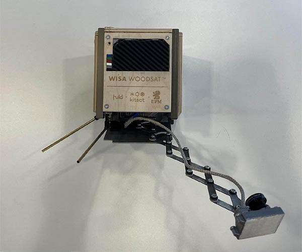 The world's first wooden satellite is on the way, in the shape of the Finnish WISA Woodsat. ESA materials experts are contributing a suite of experimental sensors to the mission as well as helping with pre-flight testing. WISA Woodsat is a 10x10x10 cm 'CubeSat' - a type of nanosatellite built up from standardised boxes - but with surface panels made from plywood. Woodsat's only non-wooden external parts are corner aluminium rails used for its deployment into space plus a metal selfie stick. The mission was initiated by Jari Makinen, Finnish writer and broadcaster. He co-founded a company called Arctic Astronautics, which markets fully functional replicas of orbit-ready CubeSats for education, training and hobby purposes. "I've always enjoyed making model planes, involving a lot of wooden parts. Having worked in the space education field, this got me wondering; why don't we fly any wooden materials in space? "So I had the idea first of all to fly a wooden satellite up to the stratosphere, aboard a weather balloon. That happened in 2017, with a wooden version of KitSat. That having gone well, we decided to upgrade it and actually go into orbit. From there the project just snowballed: we found commercial backing, and secured a berth on an Electron launcher from Rocket Lab in New Zealand."