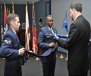 The 21st Space Wing closed the Air Force Space Surveillance System due to resource constraints caused by sequestration, marking the end of its 52 years of service to the Space Situational Awareness mission, Oct. 1. The Air Force Space Surveillance System was designed to transmit a "fence" of radar energy vertically into space to detect all objects passing through that fence. It operated from three transmitters and six receiver stations located along the 33rd parallel in the southern portion of the United States. The three transmitter sites were located at Jordan Lake, Ala.; Lake Kickapoo, Texas; and Gila River, Ariz. The six receivers were located at Tattnall, Ga.; Hawkinsville, Ga.; Silver Lake, Miss.; Red River, Ark.; Elephant Butte, N.M.; and San Diego, Calif. "The AFSSS mission was a cutting edge system when it was initially developed," said Col. John Shaw, 21st Space Wing commander. "Even to this day it complemented our SSA missions throughout the world, but due to sequestration, the decision was made to reconfigure some of our other assets and deactivate the AFSSS." The radar had three distinct processes which were performed by three different organizations. The 20th Space Control Squadron at Eglin Air Force Base, Fla., oversaw the radar transmitter and receiver sites and also collected the observations. Observations from these sites were sent to the 20th SPCS, Detachment 1 at Dahlgren, Va., where the data was processed. Finally, the 614th Air and Space Operations Center, Detachment 1 at Dahlgren, analyzed the AFSSS data and distributed observations to the Joint Space Operations Center located at Vandenberg Air Force Base, Calif. The two receiver sites at Tattnall and Silver Lake were deactivated in April of this year. The remaining sites, including the 20th SPCS, Det. 1, deactivated Oct. 1. With the exception of the 20th SPCS, Det. 1, all sites were staffed by contract personnel from Five Rivers Services. Government crews and resources from 20 SPCS, Det. 1, have been realigned under the 614th AOC, Det. 1. Modified operating modes at Perimeter Acquisition Radar Characterization System at Cavalier AFS, N.D., and the space surveillance radar at Eglin AFB, Fla., as well as other 21st Space Wing SSA sensors, allowed for the discontinuation of AFSSS operations while maintaining solid SSA. While network performance studies are ongoing, initial indications show better than expected performance of the Space Surveillance Network since discontinuing operations of AFSSS, and most metrics are indicating no noticeable impact. Additionally, Air Force Space Command will see a cost savings from the AFSSS de-activation of more than $14 million per year, beginning in Fiscal Year 2014. As part of the AFSSS closing process Shaw and Chief Master Sgt. Richard Redman, 21st Space Wing command chief, visited one of the sites before its closure. "It was an honor to be able to go and visit the contractors working at the Elephant Butte (N.M.) site," said Shaw. "Some of these people have worked on the AFSSS their entire careers and it has served us well for the past 52 years. We were especially grateful we could go there and thank the crew for their dedication in person." As the sun set on the final day of operations Sept. 30, AFSSS sites lowered the U.S. flag that flew over their locations one final time. The flag was folded and then presented to each site manager. A formal ceremony, marking the closure of all sites and deactivation of 20th SPCS, Det. 1 was also held in Dahlgren, Va. The ceremony included a special guidon flag-casing ceremony, which is a military tradition used to recognize units that have deactivated or moved. The guidon was sent to the parent unit, the 20th SPCS located at Eglin AFB, Fla., for historical preservation. "The contributions of the fence for 52 years, coupled with the dedication of the men and women who maintained and analyzed its data is a remarkable accomplishment," said Capt. Roland Rainey, commander, 614th AOC, Det. 1. Oct. 1 meant more than just a day to take down a flag; it was also a day to celebrate the AFSSS's history. "While we say 'farewell' to the AFSSS and its contributions to the Space Situational Awareness mission, it is equally important to remember all the operators, analysts and contractors, both military and civilian, who met the space race challenge over the years," said Rainey. For some of those members who devoted their careers to the AFSSS mission, Oct. 1 was a bittersweet day. Kenneth St. Clair, 20th SPCS Det. 1 site supervisor and now the 614th AOC Det. 1 supervisory information technology specialist, has worked the AFSSS mission for more than 30 years. He experienced many unit name changes throughout his tenure but the mission always stayed the same. This time, that mission will change as well. "(The closing ceremony) signified the end of 20th SPCS, Det. 1," said St. Clair. "It's going to be different but we will keep moving on." But not all sad news came out of these closing ceremonies. One member - or perhaps 'mascot' is a better term - seemed to create a bright spot to the closure of the AFSSS story.