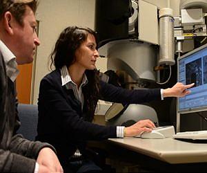 Dendrite distress To speed up development of rechargeable batteries, DOE funded the Joint Center for Energy Storage Research, a collaboration of several national labs, universities and private sector companies. Multidisciplinary teams of scientists explore a variety of problems, hoping to overcome them by understanding the underlying chemical principles. For instance, rechargeable batteries suffer from the growth of dendrites, microscopic, pin-like fibers that afflict battery electrodes. Recently, JCESR researchers led by PNNL discovered a way to eliminate dendrites in lithium batteries by using a special electrolyte. To better understand how dendrites form and can be prevented at the microscopic level, another JCESR team led by PNNL's Nigel Browning devised a microscope that could examine a full working battery in action. Unlike other views of the inner workings of batteries at high magnification, most of which use only part of a battery or have to study them under pressures not typically used in batteries, the Browning team created a complete functioning battery cell under normal operating conditions. "This is very exciting work," said first author Layla Mehdi. "We constructed a real working battery inside the transmission electron microscope. The advantage is that we can directly observe all the chemical reactions at the electrolyte-electrode interface in real time, as they are happening during cycling of the battery."