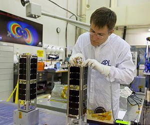 The Johns Hopkins University Applied Physics Laboratory (APL) in Laurel, Md., introduced a new generation of small satellites with the launch of two experimental "cubesats" designed for a range of national security and space science operations. On Wednesday, the cubesats were among 29 satellites lifted to orbit aboard a Minotaur I rocket from Wallops Flight Facility, Va., at 8:15 p.m. EST, as part of the U.S. Air Force ORS-3 mission. APL mission operators confirmed radio contact with the two satellites just before 10 p.m. The shoebox-sized satellites, part of APL's Multimission Bus Demonstration (and designated ORS Tech 1 and ORS Tech 2 for today's launch), represent a new capability for the military and intelligence and science communities - a small satellite that can get to space inexpensively and be tough enough for long-term use. "The Multimission Bus Demonstration could revolutionize the field of small satellites and their potential uses," says Joe Suter, APL's mission area executive for National Security Space. "There are applications for DoD agencies that want quick access to space, with durable satellites you can launch for a fraction of what it costs to launch larger spacecraft. MBD can be very significant contribution to those missions." Because they cost relatively little to build, launch and operate, small satellites (commonly known as cubesats or "microsats") are especially popular among university researchers looking to study the space just above Earth. But the spacecraft are effectively science projects, not dependable or durable enough for military or intelligence community use. The APL cubesat tackles this challenge, drawing from five decades of APL experience in building rugged spacecraft for harsh environments near and far from Earth - and from the Lab's deep, unique understanding of spacecraft, aerospace engineering and applied engineering techniques. The satellites have all the subsystems of a standard orbiter - command and data handling, communications, navigation, power and payload - scaled to fit into a 34-by-10-by-10 centimeter (about 13-by-4-by-4 inch) package that weighs less than five kilograms (11 pounds). The satellites also have other touches of APL ingenuity and resourcefulness. For example, engineers had to invent solar-panel release mechanisms that didn't include pyrotechnics, since microsats, as secondary or "piggy back" payloads on other launches, aren't permitted to carry explosives. Once deployed, the solar panels themselves have three jobs. Besides supplying power, they act as reflectors for the satellite's antennas, and the magnetic field produced from the internal torque coils are used to align the spacecraft. "We are leveraging decades of APL space systems experience to make these spacecraft more reliable than typical cubesats," says APL's Philip Huang, the MBD technical lead. A critical feature is that the satellite can be customized to fit mission needs, and instrument builders can add any payload that fits within the spacecraft's size, power and interface specifications.