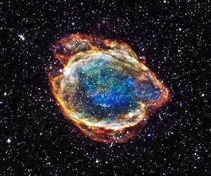 Because the debris fields of exploded stars, known as supernova remnants, are very hot, energetic, and glow brightly in X-ray light, NASA's Chandra X-ray Observatory has proven to be a valuable tool in studying them. The supernova remnant called G299.2-2.9 (or G299 for short) is located within our Milky Way galaxy, but Chandra's new image of it is reminiscent of a beautiful flower here on Earth. G299 was left over by a particular class of supernovas called Type Ia. Astronomers think that a Type Ia supernova is a thermonuclear explosion - involving the fusion of elements and release of vast amounts of energy - of a white dwarf star in a tight orbit with a companion star. If the white dwarf's partner is a typical, Sun-like star, the white dwarf can become unstable and explode as it draws material from its companion. Alternatively, the white dwarf is in orbit with another white dwarf, the two may merge and can trigger an explosion. Regardless of their triggering mechanism, Type Ia supernovas have long been known to be uniform in their extreme brightness, usually outshining the entire galaxy where they are found. This is important because scientists use these objects as cosmic mileposts, allowing them to accurately measure the distances of galaxies billions of light years away, and to determine the rate of expansion of the Universe. Traditional theoretical models of Type Ia supernovas generally predict that these explosions would be symmetric, creating a near perfect sphere as they expand. These models have been supported by results showing that remnants of Type Ia supernovas are more symmetric than remnants of supernovas involving the collapse of massive stars. However, astronomers are discovering that some Type Ia supernova explosions may not be as symmetric as previously thought. G299 could be an example of such an "unusual" Type Ia supernova. Using a long observation from Chandra, researchers discovered the shell of debris from the exploded star is expanding differently in various directions. In this new Chandra image, red, green, and blue represent low, medium, and high-energy X-rays, respectively, detected by the telescope. The medium energy X-rays include emission from iron and the hard-energy X-rays include emission from silicon and sulfur. The X-ray data have been combined with infrared data from ground-based 2MASS survey that shows the stars in the field of view. By performing a detailed analysis of the X-rays, researchers found several clear examples of asymmetry in G299. For example, the ratio between the amounts of iron and silicon in the part of the remnant just above the center is larger than in the part of the remnant just below the center. This difference can be seen in the greener color of the upper region compared to the bluer color of the lower region. Also, there is a strongly elongated portion of the remnant extending to the right. In this region, the relative amount of iron to silicon is similar to that found in the southern region of the remnant. The patterns seen in the Chandra data suggest that a very lopsided explosion may have produced this Type Ia supernova. It might also be that the remnant has been expanding into an environment where the medium it encountered was uneven. Regardless of the ultimate explanation, observations of G299 and others like it are showing astronomers just how varied such beautiful cosmic flowers can be.
