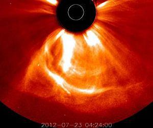 Earth dodged a huge magnetic bullet from the sun on July 23, 2012. According to University of California, Berkeley, and Chinese researchers, a rapid succession of coronal mass ejections - the most intense eruptions on the sun - sent a pulse of magnetized plasma barreling into space and through Earth's orbit. Had the eruption come nine days earlier, it would have hit Earth, potentially wreaking havoc with the electrical grid, disabling satellites and GPS, and disrupting our increasingly electronic lives. The solar bursts would have enveloped Earth in magnetic fireworks matching the largest magnetic storm ever reported on Earth, the so-called Carrington event of 1859. The dominant mode of communication at that time, the telegraph system, was knocked out across the United States, literally shocking telegraph operators. Meanwhile, the Northern Lights lit up the night sky as far south as Hawaii. In a paper appearing today (Tuesday, March 18) in the journal Nature Communications, former UC Berkeley postdoctoral fellow and research physicist Ying D. Liu, now a professor at China's State Key Laboratory of Space Weather, UC Berkeley research physicist Janet G. Luhmann and their colleagues report their analysis of the magnetic storm, which was detected by NASA's STEREO A spacecraft. "Had it hit Earth, it probably would have been like the big one in 1859, but the effect today, with our modern technologies, would have been tremendous," said Luhmann, who is part of the STEREO (Solar Terrestrial Observatory) team and based at UC Berkeley's Space Sciences Laboratory. A study last year estimated that the cost of a solar storm like the Carrington Event could reach $2.6 trillion worldwide. A considerably smaller event on March 13, 1989, led to the collapse of Canada's Hydro-Quebec power grid and a resulting loss of electricity to six million people for up to nine hours. "An extreme space weather storm - a solar superstorm - is a low-probability, high-consequence event that poses severe threats to critical infrastructures of the modern society," warned Liu, who is with the National Space Science Center of the Chinese Academy of Sciences in Beijing. "The cost of an extreme space weather event, if it hits Earth, could reach trillions of dollars with a potential recovery time of 4-10 years. Therefore, it is paramount to the security and economic interest of the modern society to understand solar superstorms." Based on their analysis of the 2012 event, Liu, Luhmann and their STEREO colleagues concluded that a huge outburst on the sun on July 22 propelled a magnetic cloud through the solar wind at a peak speed of more than 2,000 kilometers per second - four times the typical speed of a magnetic storm. It tore through Earth's orbit but, luckily, Earth and the other planets were on the other side of the sun at the time. Any planets in the line of sight would have suffered severe magnetic storms as the magnetic field of the outburst tangled with the planets' own magnetic fields. The researchers determined that the huge outburst resulted from at least two nearly simultaneous coronal mass ejections (CMEs), which typically release energies equivalent to that of about a billion hydrogen bombs. The speed with which the magnetic cloud plowed through the solar wind was so high, they concluded, because another mass ejection four days earlier had cleared the path of material that would have slowed it down. "The authors believe this extreme event was due to the interaction of two CMEs separated by only 10 to 15 minutes," said Joe Gurman, the project scientist for STEREO at NASA's Goddard Space Flight Center in Greenbelt, Md. One reason the event was potentially so dangerous, aside from its high speed, is that it produced a very long-duration, southward-oriented magnetic field, Luhmann said. This orientation drives the largest magnetic storms when they hit Earth because the southward field merges violently with Earth's northward field in a process called reconnection. Storms that normally might dump their energy only at the poles instead dump it into the radiation belts, ionosphere and upper atmosphere and create auroras down to the tropics. "These gnarly, twisty ropes of magnetic field from coronal mass ejections come blasting from the sun through the ambient solar system, piling up material in front of them, and when this double whammy hits Earth, it skews the Earth's magnetic field to odd directions, dumping energy all around the planet," she said. "Some of us wish Earth had been in the way; what an experiment that would have been." "People keep saying that these are rare natural hazards, but they are happening in the solar system even though we don't always see them," she added. "It's like with earthquakes - it is hard to impress upon people the importance of preparing unless you suffer a magnitude 9 earthquake." All this activity would have been missed if STEREO A - the STEREO spacecraft ahead of us in Earth's orbit and the twin to STEREO B, which trails in our orbit - had not been there to record the blast. The goal of STEREO and other satellites probing the magnetic fields of the sun and Earth is to understand how and why the sun sends out these large solar storms and to be able to predict them during the sun's 11-year solar cycle. This event was particularly unusual because it happened during a very calm solar period. "Observations of solar superstorms have been extremely lacking and limited, and our current understanding of solar superstorms is very poor," Liu said. "Questions fundamental to solar physics and space weather, such as how extreme events form and evolve and how severe it can be at the Earth, are not addressed because of the extreme lack of observations."
