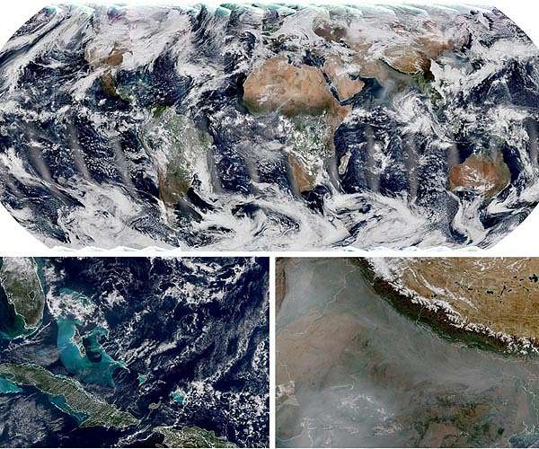 Bright blue water in the Caribbean Sea and smog in Northern India appear in the first global image produced with data from NOAA-21's VIIRS instrument. The Visible Infrared Imaging Radiometer Suite (VIIRS) instrument on NOAA-21 began collecting Earth science data on Dec. 5 as the satellite passed over the East Coast of the United States. Data for the global image was collected over a period of 24 hours between Dec. 5 and 6. This came three weeks after NASA launched the NOAA-21 satellite from Vandenberg Space Force Base in California on Nov. 10, 2022. The VIIRS instrument - which also flies on the NOAA-20 and the NASA/NOAA Suomi-NPP satellites - provides global measurements of the atmosphere, land, and oceans. It was built by Raytheon Intelligence and Space in El Segundo, California. "VIIRS serves so many disciplines, it's an absolutely critical set of measurements," said Dr. James Gleason, NASA project scientist for the JPSS Flight Project. "VIIRS provides many different data products that are used by scientists in unrelated fields, from agricultural economists trying to do crop forecasts, to air quality scientists forecasting where wildfire smoke will be, to disaster support teams who count night lights to understand the impact of a disaster." Over the oceans, VIIRS measures sea surface temperature, a metric that's important for monitoring hurricane formation. It also measures ocean color, which helps scientists monitor phytoplankton activity, a key indicator of ocean ecology and marine health. "The turquoise color that's visible around Cuba and the Bahamas in the bottom-left image above comes from sediment in the shallow waters around the continental shelf," said NOAA's Dr. Satya Kalluri, Joint Polar Satellite System program scientist. Over land, VIIRS can detect and measure wildfires, droughts and floods, and its data can be used to track the thickness and movement of wildfire smoke. The bottom-right image above shows haze and smog over Northern India that is likely due to agricultural burning. The snow-capped Himalayas and the Tibetan plateau are also visible to the north. One of the unique features of VIIRS is its Day-Night Band, which captures images of lights at night, including city lights, lightning, auroras and lights from ships and fires. And one of its most important uses is imagery over Alaska, Dr. Kalluri said. This is because these satellites, which orbit the Earth from the North pole to the South pole, fly directly over the Arctic several times a day. The instrument also generates critical environmental products on snow and ice cover, clouds, fog, aerosols and dust, and the health of the world's crops. This "first light" image comes two weeks after the first image from the satellite's Advanced Technology Microwave Sounder (ATMS) was released. The satellite, known as JPSS-2 during the build and launch, was officially renamed NOAA-21 after launch, following NOAA's naming conventions for polar orbiting satellites. "We had two VIIRS on orbit, and now we've got three," Dr. Gleason said. "We launch multiple weather satellites to make doubly and now triply sure we always have one going. Space is a dangerous environment. Stuff happens and you can lose an instrument or a satellite, but we cannot lose the data. It's too important, to too many people." Together, NASA and NOAA oversee the development, launch, testing, and operation of all the satellites in the Joint Polar Satellite System program. NOAA funds and manages the program, operations, and data products. On behalf of NOAA, NASA and commercial partners develop and build the instruments, spacecraft, and ground system, and launch the satellites.