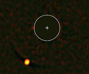 An international team of astronomers, including members of the University of Geneva (UNIGE), Switzerland, discovered an exoplanet by direct imaging using SPHERE, an instrument designed and developed by a consortium of 12 European institutes on the Very Large Telescope ESO, based in Chile. The instrument, which corrects in real time the terrestrial atmospheric turbulences and occults the light of the star, allows to take a real "photography" of the exoplanet. A result published in the journal Astronomy and Astrophysics this week. While more than 3600 exoplanets were discovered through indirect methods, only a handful of them could be observed by direct imaging. This is the first time that astronomers have been able to discover a planet directly on a "photography" with SPHERE, an instrument designed and developed by a consortium of 12 European institutes, including the UNIGE Astronomical Observatory. In order to take this kind of image, SPHERE is equipped with a deformable mirror that corrects 1200 times per second in real time the atmospheric turbulences, and with a coronograph which allows to hide the light of the star and reveals that of the planet. SPHERE is able to detect the signal of a planet up to a million times lower than that of its host star. Installed on the VLT (Very Large Telescope) in Chile, SPHERE then discovered HIP65426b, an exoplanet located at three times the Earth-Neptune distance from its star, and whose mass is 6 to 12 times higher than that of Jupiter with a temperature in the range of 1200 degrees celsius.