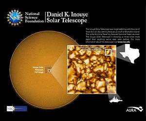 NSF's newest solar telescope produces first images, most detailed images of the sun Washington DC (SPX) Jan 30, 2020 Just released first images from the National Science Foundation's Daniel K. Inouye Solar Telescope reveal unprecedented detail of the sun's surface and preview the world-class products to come from this preeminent 4-meter solar telescope. NSF's Inouye Solar Telescope will enable a new era of solar science and a leap forward in understanding the sun and its impacts on our planet. Activity on the sun, known as space weather, can affect systems on Earth. Magnetic eruptions on the sun can impact air t ... read more