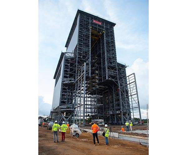 At Europe's Spaceport the Ariane 6 mobile gantry, a 90 metre-high metallic structure built to house Ariane 6 underwent a 97 m rollout test last week to mimic prelaunch. When fully equipped, this mobile gantry will weigh 8200 tonnes - more than a thousand tonnes heavier than France's Eiffel Tower. Its platforms provide access to the launch vehicle for integration on the launch pad. It protects Ariane 6 until its doors are opened and it is retracted about five hours before the launch. The mobile gantry stands on 16 bogies, each bogie comprises eight wheels and each wheel is equipped with one electric motor. A total of 128 electric motors synchronise to set the wheels in motion along rails. "Preparation is everything but the actual move is automated and quite simple," explained Jean-Michel Rizzi, ESA's Ariane 6 Launch Base Project Manager, "You choose to move the gantry forward or backwards and then press the start button. "There are three speeds. The first and last metre are done at the slowest speed of a metre per minute. This increases to a 'cruising' speed of 7.6 m per minute for a 130 m stretch and then slowed back down to 3 m per minute in the decelerating phase over a distance of 9 m. The full rollout of 141 m takes 22 minutes." Over the next five weeks this test will be repeated several times and after each test, the mobile gantry will be rolled back to its initial pulled back position. Current works being carried out around the nearby mast will soon be finished allowing the mobile gantry to follow the full track length. Engineers will measure speed, the profile of electrical power being drawn during the rollouts, and the synchronisation of all 128 motors. The Ariane 6 Launch Base construction is nearly complete and final tests are proving the infrastructures are ready for handover from industry to CNES, France's Space Agency. These rollouts are part of this process. At the end of this year all systems are expected to be fully integrated. After a successful Launch Base Technical Qualification Review, CNES will hand over the launch base to ESA.
