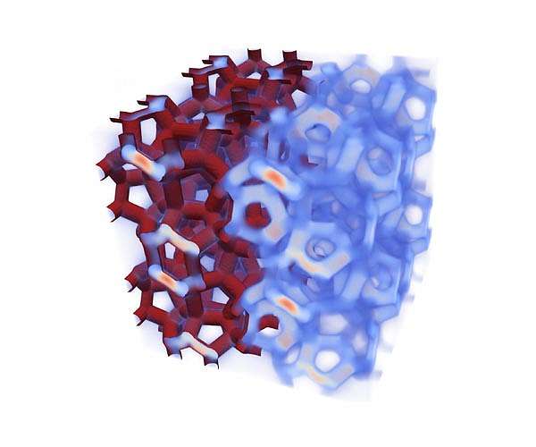 There is more to foam than meets the eye. Literally. A study by Princeton scientists has shown that a type of foam long studied by scientists is able to block particular wavelengths of light, a coveted property for next-generation information technology that uses light instead of electricity. The researchers, integrating expertise from materials science, chemistry and physics, conducted exhaustive computational simulations of a structure known as a Weaire-Phelan foam. They found that this foam would allow some frequencies of light to pass through while completely reflecting others. This selective blocking, known as a photonic band gap, is similar to the behavior of a semiconductor, the bedrock material behind all modern electronics because of its ability to control the flow of electrons at extremely small scales. "This has the property we want: an omnidirectional mirror for a certain range of frequencies," said Salvatore Torquato, professor of chemistry and the Princeton Institute for the Science and Technology of Materials. Torquato, the Lewis Bernard Professor of Natural Sciences, published the results Nov. 6 in the Proceedings of the National Academy of Sciences, with coauthors Michael Klatt, a postdoctoral researcher, and physicist Paul Steinhardt, who is Princeton's Albert Einstein Professor in Science. While numerous examples of photonic band gaps have been shown previously in various types of crystals, the researchers believe that their new finding is the first example in a foam, similar to the froth of soap bubbles or a draft beer. Unlike the disordered foam of beer however, the Weaire-Phelan foam is a precisely structured arrangement with deep roots in mathematics and physics. The origins of the Weaire-Phelan foam date to 1887 when the Scottish physicist Lord Kelvin proposed a structure for the "ether," the mysterious substance that was then thought to comprise a background structure to all space. Although the concept of the ether was already falling out of favor at the time, Kelvin's proposed foam went on to intrigue mathematicians for a century because it appeared to be the most efficient way to fill space with interlocking geometrical shapes that have the least possible surface area. In 1993, physicists Denis Weaire and Robert Phelan found an alternative arrangement that requires slightly less surface area. Since then, interest in the Weaire-Phelan structure was mainly in the mathematics, physics and artistic communities. The structure was used as the outer wall of the "Beijing Water Cube" created for the 2008 Olympics. The new finding now makes the structure of interest to materials scientists and technologists. "You start out with a classical, beautiful problem in geometry, in mathematics, and now suddenly you have this material that opens up a photonic band gap," Torquato said. Torquato, Klatt and Steinhardt became interested in the Weaire-Phelan foam as a tangent of another project in which they were investigating "hyperuniform" disordered materials as an innovative way to control light. Although not their original focus, the three realized that this precisely structured foam had intriguing properties. "Little by little, it became apparent that there was something interesting here," Torquato said. "And eventually we said, 'Ok, let's put the main project to the side for a while to pursue this.'" "Always look out for what's at the wayside of research," Klatt added. Weaire, who was not involved in this new finding, said that the Princeton discovery is part of a broadening interest in the material since he and Phelan discovered it. He said the possible new use in optics likely stems from the material being very isotropic, or not having strongly directional properties. "The fact that it displays a photonic band gap is very interesting because it turns out to have so many special properties," said Andrew Kraynik, an expert in foams who earned his Ph.D. in chemical engineering from Princeton in 1977 and has studied the Weaire-Phelan foam extensively but was not involved in the Princeton study. Another Princeton connection, said Kraynik, is that a key tool in discovering and analyzing the Weaire-Phelan foam is a software tool called Surface Evolver, which optimizes shapes according to their surface properties and was written by Ken Brakke, who earned his Ph.D. in math at Princeton in 1975. To show that the Weaire-Phelan foam exhibited the light-controlling properties they were seeking, Klatt developed a meticulous set of calculations that he executed on the supercomputing facilities of the Princeton Institute for Computational Science and Engineering. "The programs he had to run are really computationally intensive," Torquato said. The work opens numerous possibilities for further invention, said the researchers, who dubbed the new area of work as "phoamtonics" (a mashup of "foam" and "photonics"). Because foams occur naturally and are relatively easy to make, one possible goal would be to coax raw materials to self-organize into the precise arrangement of the Weaire-Phelan foam, Torquato said. With further development, the foam could transport and manipulate light used in telecommunications. Currently much of the data traversing the internet is carried by glass fibers. However, at its destination, the light is converted back to electricity. Photonic band gap materials could guide the light much more precisely than conventional fiber optic cables and might serve as optical transistors that perform computations using light. "Who knows?" said Torquato. "Once you have this as a result, then it provides experimental challenges for the future."