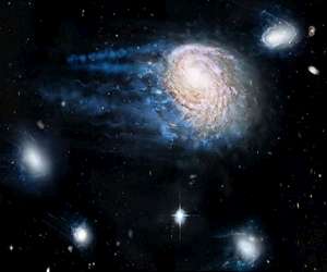 It's the big astrophysical whodunnit. Across the Universe, galaxies are being killed and the question scientists want answered is, what's killing them? New research published by a global team of researchers, based at the International Centre for Radio Astronomy Research (ICRAR), seeks to answer that question. The study reveals that a phenomenon called ram-pressure stripping is more prevalent than previously thought, driving gas from galaxies and sending them to an early death by depriving them of the material to make new stars. The study of 11,000 galaxies shows their gas - the lifeblood for star formation - is being violently stripped away on a widespread scale throughout the local Universe. Toby Brown, leader of the study and PhD candidate at ICRAR and Swinburne University of Technology, said the image we paint as astronomers is that galaxies are embedded in clouds of dark matter that we call dark matter halos. Dark matter is the mysterious material that despite being invisible accounts for roughly 27 per cent of our Universe, while ordinary matter makes up just 5 per cent. The remaining 68 per cent is dark energy. "During their lifetimes, galaxies can inhabit halos of different sizes, ranging from masses typical of our own Milky Way to halos thousands of times more massive," Mr Brown said. "As galaxies fall through these larger halos, the superheated intergalactic plasma between them removes their gas in a fast-acting process called ram-pressure stripping. "You can think of it like a giant cosmic broom that comes through and physically sweeps the gas from the galaxies." Mr Brown said removing the gas from galaxies leaves them unable to form new stars. "It dictates the life of the galaxy because the existing stars will cool off and grow old," he said. "If you remove the fuel for star formation then you effectively kill the galaxy and turn it into a dead object." ICRAR researcher Dr Barbara Catinella, co-author of the study, said astronomers already knew ram-pressure stripping affected galaxies in clusters, which are the most massive halos found in the Universe. "This paper demonstrates that the same process is operating in much smaller groups of just a few galaxies together with much less dark matter," said Mr Brown. "Most galaxies in the Universe live in these groups of between two and a hundred galaxies," he said. "We've found this removal of gas by stripping is potentially the dominant way galaxies are quenched by their surrounds, meaning their gas is removed and star formation shuts down." The study was published in the journal Monthly Notices of the Royal Astronomical Society. It used an innovative technique combining the largest optical galaxy survey ever completed - the Sloan Digital Sky Survey - with the largest set of radio observations for atomic gas in galaxies - the Arecibo Legacy Fast ALFA survey. Mr Brown said the other main process by which galaxies run out of gas and die is known as strangulation. "Strangulation occurs when the gas is consumed to make stars faster than it's being replenished, so the galaxy starves to death," he said. "It's a slow-acting process. On the contrary, what ram-pressure stripping does is bop the galaxy on the head and remove its gas very quickly - of the order of tens of millions of years - and astronomically speaking that's very fast." Research paper: 'Cold gas stripping in satellite galaxies: from pairs to clusters'