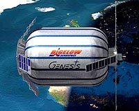 SpaceDaily US Editor Las Vegas NV (SPX) Jul 14, 2006 Bigelow Aerospace has announced that the Genesis I prototype spacecraft successfully inflated and its solar arrays are deployed and supplying power to the onboard instruments. "All Systems are operating within expected parameters," said Robert T. Bigelow, the company's founder. "Temperature, avionics, solar arrays and battery power all remain positive. "All of our initial orbits have had direct sunlight, which has helped in charging the main battery to maximum capacity." Bigelow added. Genesis I was launched Wednesday aboard a Russian Dnepr rocket from Dombarovsky missile base in Siberia. As the spacecraft achieved its designed orbit of 550 kilometers (340 miles) a short time later, computer-controller air-pressure tanks activated and expanded the pre-folded structure into its watermelon shape. The one-third-scale prototype is 4.5 meters (15 feet) long with a diameter of 2.4 meters (8 feet). The tough fabric shell is made of a composite of Kevlar - used to make bullet-proof vests - and an advanced material called Vectran. The spacecraft's planned operational lifetime is five years, during which technicians will determine if Genesis can maintain the proper internal air pressure and temperature, whether it can withstand any collisions with space debris and micrometeorites, and whether solar radiation causes any deterioration of the airtight fabric. Bigelow said the internal temperature currently is a comfortable 78 degrees Fahrenheit (26 degrees Celsius), and air pressure is within normal limits. Genesis carries live insect colonies, whose health will be monitored during the mission. Ground controllers have acquired the spacecraft's Global Positioning System signal that will enable them to track its orbit. "We have had multiple contacts with the ship," Bigelow said, "and received several data streams. While most of these current communication streams are dedicated to command and control of the spacecraft, we have downloaded several small images from the onboard cameras and hope to get more as more bandwidth in the data stream becomes available." The company plans to send another inflatable prototype into orbit this fall. It will carry insects as well, plus the photographs and personal items of paying customers. Genesis II also will carry multiple cameras for the purpose of recording those items floating by in the spacecraft's interior. "Every day, Bigelow Aerospace will be downloading images and video from these cameras," the company said on its Web site. "If you log onto the Bigelow Aerospace Web portal, you will have a chance to actually see your item floating by." Eventually, Bigelow wants to put a multi-module version of Genesis into orbit to serve as the first space hotel, hosting private tourists. Toward that end, he has established America's Space Prize, a $50-million award to the first private spacecraft that can carry five passengers and crew to an altitude of 400 kilometers (250 miles) by 2010. Related Links Bigelow Aerospace