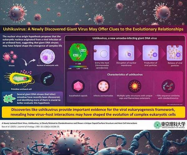 In work published online on November 24, 2025, in the Journal of Virology, the team reports the discovery of ushikuvirus, a newly isolated giant virus named after Lake Ushiku in Ibaraki Prefecture, where it was found. Ushikuvirus infects vermamoeba and belongs to a group of large DNA viruses related to the family Mamonoviridae, adding another data point to studies of viral roles in early eukaryotic evolution.