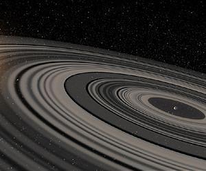Astronomers at the Leiden Observatory, The Netherlands, and the University of Rochester, USA, have discovered that the ring system that they see eclipse the very young Sun-like star J1407 is of enormous proportions, much larger and heavier than the ring system of Saturn. The ring system - the first of its kind to be found outside our solar system - was discovered in 2012 by a team led by Rochester's Eric Mamajek. A new analysis of the data, led by Leiden's Matthew Kenworthy, shows that the ring system consists of over 30 rings, each of them tens of millions of kilometers in diameter. Furthermore, they found gaps in the rings, which indicate that satellites ("exomoons") may have formed. The result has been accepted for publication in the Astrophysical Journal. "The details that we see in the light curve are incredible. The eclipse lasted for several weeks, but you see rapid changes on time scales of tens of minutes as a result of fine structures in the rings," says Kenworthy. "The star is much too far away to observe the rings directly, but we could make a detailed model based on the rapid brightness variations in the star light passing through the ring system. If we could replace Saturn's rings with the rings around J1407b, they would be easily visible at night and be many times larger than the full moon." "This planet is much larger than Jupiter or Saturn, and its ring system is roughly 200 times larger than Saturn's rings are today," said co-author Mamajek, professor of physics and astronomy at the University of Rochester. "You could think of it as kind of a super Saturn." The astronomers analyzed data from the SuperWASP project - a survey that is designed to detect gas giants that move in front of their parent star. In 2012, Mamajek and colleagues at the University of Rochester reported the discovery of the young star J1407 and the unusual eclipses, and proposed that they were caused by a moon-forming disk around a young giant planet or brown dwarf. In a third, more recent study also led by Kenworthy, adaptive optics and Doppler spectroscopy were used to estimate the mass of the ringed object. Their conclusions based on these and previous papers on the intriguing system J1407 is that the companion is likely to be a giant planet - not yet seen - with a gigantic ring system responsible for the repeated dimming of J1407's light. The light curve tells astronomers that the diameter of the ring system is nearly 120 million kilometers, more than two hundred times as large as the rings of Saturn. The ring system likely contains roughly an Earth's worth of mass in light-obscuring dust particles. Mamajek puts into context how much material is contained in these disks and rings. "If you were to grind up the four large Galilean moons of Jupiter into dust and ice and spread out the material over their orbits in a ring around Jupiter, the ring would be so opaque to light that a distant observer that saw the ring pass in front of the sun would see a very deep, multi-day eclipse," Mamajek says. "In the case of J1407, we see the rings blocking as much as 95 percent of the light of this young Sun-like star for days, so there is a lot of material there that could then form satellites." In the data the astronomers found at least one clean gap in the ring structure, which is more clearly defined in the new model. "One obvious explanation is that a satellite formed and carved out this gap," says Kenworthy. "The mass of the satellite could be between that of Earth and Mars. The satellite would have an orbital period of approximately two years around J1407b." Astronomers expect that the rings will become thinner in the next several million years and eventually disappear as satellites form from the material in the disks. "The planetary science community has theorized for decades that planets like Jupiter and Saturn would have had, at an early stage, disks around them that then led to the formation of satellites," Mamajek explains. "However, until we discovered this object in 2012, no-one had seen such a ring system. This is the first snapshot of satellite formation on million-kilometer scales around a substellar object." Astronomers estimate that the ringed companion J1407b has an orbital period roughly a decade in length. The mass of J1407b has been difficult to constrain, but it is most likely in the range of about 10 to 40 Jupiter masses. The researchers encourage amateur astronomers to help monitor J1407, which would help detect the next eclipse of the rings, and constrain the period and mass of the ringed companion. Observations of J1407 can be reported to the American Association of Variable Star Observers (AAVSO). In the meantime the astronomers are searching other photometric surveys looking for eclipses by yet undiscovered ring systems. Kenworthy adds that finding eclipses from more objects like J1407's companion "is the only feasible way we have of observing the early conditions of satellite formation for the near future. J1407's eclipses will allow us to study the physical and chemical properties of satellite-spawning circumplanetary disks."