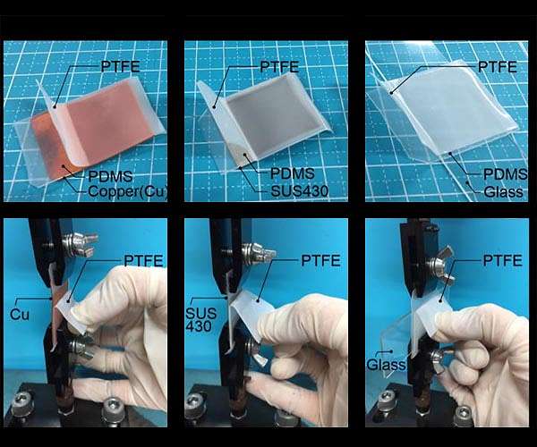Polymers containing plastics are essential in modern life. Being lightweight, strong and unreactive, a vast range of technologies depend on them. However, most polymers do not adhere naturally to other materials, so they need adhesives or corrosive chemical treatments to be attached to other materials. This is a problem in areas like food and medicine, where contamination must be avoided at all costs. A clean way to make industrial polymers adhesive is urgently needed. Now, a team at Osaka University has achieved just that. They have developed a suite of plasma treatments to allow vulcanized rubber and the plastic PTFE (polytetrafluoroethylene) to adhere to one another, or to other materials. The method activates the polymers' surface chemistry, as described in a study in Scientific Reports. "If you spray PTFE with a plasma of helium at 200 degrees, it can adhere to unvulcanized rubber - this is a technique we developed earlier in our lab," says study lead author Yuji Ohkubo. "But vulcanized rubber presents a greater challenge. In our latest study, we customized a new plasma treatment for vulcanized silicone rubber, making it adhere strongly to PTFE for the first time." The silicone in question was PDMS (polydimethylsiloxane), a well-known resin. While the key breakthrough in PTFE adhesion was the heat-assisted plasma treatment, the trick with PDMS is to bombard the surface with a plasma jet, by forcing nitrogen/air plasma through a small hole. The jet breaks the silicon-carbon bonds on the surface and converts them to silanol (Si-OH). Being more reactive than the original silicone surface, these silanol groups can bond with PTFE. Under high pressure, hydrogen bonds form between silanol and the oxygen-containing functional groups on the treated PTFE. Strong covalent bonds (C-O-Si, where C comes from PTFE and Si from silicone) further stitch the two polymers together, even with no adhesive. Uniting the two materials allows each to enjoy the benefits of the other - the chemical resistance, dirt-repellent and slide-ability of PTFE, and the elasticity of silicone. Opaque PTFE can also be replaced by PFA (perfluoroalkoxy alkane) if transparency is needed. And that's not all - when the reverse side of the PDMS is also plasma-jetted, it can bond to copper and even glass. Like an extremely strong double-sided tape, this three-layer sandwich allows the fluoropolymers to adhere cleanly to other useful materials. "PDMS is widely used in medicine, for example in microfluidic chips," explains co-author Katsuyoshi Endo. "There could be huge benefits in making both PTFE and PDMS more versatile for medical and food technologies through adhesive-free adhesion. Combined with the lack of any need for volatile chemicals, we hope our method will broaden the horizons for polymers in high technology."