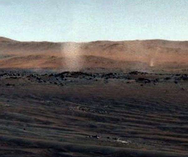 Mars is dominated by a dry, dusty desert landscape where winds and rotating columns of air lift fine particles into the atmosphere and later return them to the surface. The resulting dust cycle depends on surface - atmosphere interactions, seasonal changes, and the development of occasional planet-encircling dust storms.
