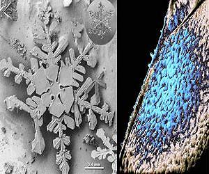 Recipe for disorder The instant the sprightly vapor molecules enter the chamber they are literally frozen in their tracks. Still pointing every which way, the molecules are transformed immediately from their gaseous state into the disorderly solid called amorphous ice. Amorphous ice is exactly the opposite of the typical ice on Earth, which forms perfect crystals like those that make up snowflakes or frost needles. These crystals are so orderly and predictable that this ice is considered a mineral, complete with a rating of 2.5 on the Mohs scale of hardness-the same rating as a fingernail. Though almost unheard of on Earth, amorphous ice is so widespread in interstellar space that it could be the most common form of water in the universe. Left over from the age when the solar system was born, it is scattered across vast distances, often as particles no bigger than grains of dust. It's also been spotted in comets and icy moons. The secret to making amorphous ice in the lab, Gerakines finds, is to limit the layer to a depth of about half a micrometer-thinner than a strand of spider's silk. "Water is such a good insulator that if the ice gets too thick, only the bottom of the sample, closer to the cooling source, will stay sufficiently cold," says Gerakines. "The ice on top will get warm enough to crystallize." The superthin ice can be spiked with all kinds of interesting chemicals found in space. One set of chemicals that Gerakines works with is amino acids, which are key players in the chemistry of life on Earth. Researchers have spent decades identifying a whole smorgasbord of amino acids in meteorites (including some involved in life), as well as one found in a sample taken from a comet. "And because water is the dominant form of frozen material in the interstellar medium and outer solar system," says Gerakines, "any amino acids out there are probably in contact with water at some point." For his current set of experiments, Gerakines makes three kinds of ice, each spiked with an amorphous form of an amino acid (either glycine, alanine or phenylalanine) that is found in proteins.