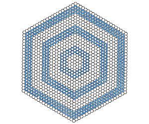 Concentric hexagons of graphene grown in a furnace at Rice University represent the first time anyone has synthesized graphene nanoribbons on metal from the bottom up - atom by atom. As seen under a microscope, the layers brought onions to mind, said Rice chemist James Tour, until a colleague suggested flat graphene could never be like an onion. "So I said, 'OK, these are onion rings,'" Tour quipped. The name stuck, and the remarkable rings that chemists marveled were even possible are described in a new paper in the Journal of the American Chemical Society. The challenge was to figure out how such a thing could grow, Tour said. Usually, graphene grown in a hot furnace by chemical vapor deposition starts on a seed - a speck of dust or a bump on a copper or other metallic surface. One carbon atom latches onto the seed in a process called nucleation and others follow to form the familiar chicken-wire grid. Experiments in Tour's lab to see how graphene grows under high pressure and in a hydrogen-rich environment produced the first rings. Under those conditions, Tour, Rice theoretical physicist Boris Yakobson and their teams found that the entire edge of a fast-growing sheet of graphene becomes a nucleation site when hydrogenated. The edge lets carbon atoms get under the graphene skin, where they start a new sheet. But because the top graphene grows so fast, it eventually halts the flow of carbon atoms to the new sheet underneath. The bottom stops growing, leaving a graphene ring. Then the process repeats. "The mechanism relies on that top layer to stop carbon from reaching the bottom so easily," Tour said. "What we get are a multiple of single crystals growing one on top of the other." The Tour lab pioneered the bulk manufacture of single-atom-thick graphene nanoribbons in 2009 with the discovery that carbon nanotubes could be chemically "unzipped" into long, thin sheets. Nanoribbons are being studied for use in batteries and advanced electronics and as heat sinks. "Usually you make a ribbon by taking a large thing and cutting it down," Tour said. "But if you can grow a ribbon from the bottom up, you could have control of the edges." The atomic configuration at the edge helps determine graphene's electrical properties. The edges of hexagonal graphene onion rings are zigzags, which make the rings metallic. "The big news here," he said, "is that we can change relative pressures of the growth environment of hydrogen versus carbon and get entirely new structures. This is dramatically different from regular graphene." Graduate student Zheng Yan, a member of Tour's lab and lead author of the paper, discovered the new route to nanoribbons while experimenting with graphene growth under hydrogen pressurized to varying degrees. The sweet spot for rings was at 500 Torr, he said. Further testing found the microscopic rings formed underneath and not on top of the sheet, and Yakobson's lab confirmed the growth mechanism through first-principle calculations. Yan also determined the top sheet of graphene could be stripped away with argon plasma, leaving stand-alone rings. The width of the rings, which ranged from 10 to 450 nanometers, also affects their electronic properties, so finding a way to control it will be one focus of continued research, Tour said. "If we can consistently make 10-nanometer ribbons, we can begin to gate them and turn them into low-voltage transistors," he said. They may also be suitable for lithium storage for advanced lithium ion batteries, he said. Co-authors of the paper are Rice graduate students Yuanyue Liu, Zhiwei Peng, Changsheng Xiang, Abdul-Rahman Raji and Errol Samuel; postdoctoral researchers Jian Lin, Gunuk Wang and Haiqing Zhou; Rice alumna Elvira Pembroke; and Professor Ting Yu of Nanyang Technological University. Tour is the T.T. and W.F. Chao Chair in Chemistry as well as a professor of mechanical engineering and materials science and of computer science at Rice. Yakobson is the Karl F. Hasselmann Professor of Mechanical Engineering and Materials Science and professor of chemistry.