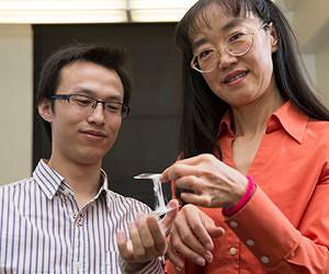 A group of Washington State University researchers has developed a chewing gum-like battery material that could dramatically improve the safety of lithium ion batteries. Led by Katie Zhong, Westinghouse Distinguished Professor in the School of Mechanical and Materials Engineering, the researchers recently reported on their work in the journal, Advanced Energy Materials. They have also filed a patent. High performance lithium batteries are popular in everything from computers to airplanes because they are able to store a large amount of energy compared to other batteries. Their biggest potential risk, however, comes from the electrolyte in the battery, which is made of either a liquid or gel in all commercially available rechargeable lithium batteries. Electrolytes are the part of the battery that allow for the movement of ions between the anode and the cathode to create electricity. The liquid acid solutions can leak and even create a fire or chemical burn hazard. While commercial battery makers have ways to address these safety concerns, such as adding temperature sensors or flame retardant additives, they "can't solve the safety problem fundamentally,'' says Zhong. Zhong's research group has developed a gum-like lithium battery electrolyte, which works as well as liquid electrolytes at conducting electricity but which doesn't create a fire hazard. Researchers have been toying around with solid electrolytes to address safety concerns, but they don't conduct electricity well and it's difficult to connect them physically to the anode and cathode. Zhong was looking for a material that would work as well as liquid and could stay attached to the anode and cathode - "like when you get chewing gum on your shoe,'' she told her students. Advised by Zhong, graduate student Yu "Will" Wang designed his electrolyte model specifically with gum in mind. It is twice as sticky as real gum and adheres very well to the other battery components. The material, which is a hybrid of liquid and solid, contains liquid electrolyte material that is hanging on solid particles of wax or a similar material. Current can easily travel through the liquid parts of the electrolyte, but the solid particles act as a protective mechanism. If the material gets too hot, the solid melts and easily stops the electric conduction, preventing any fire hazard. The electrolyte material is also flexible and lightweight, which could be useful in future flexible electronics. You can stretch, smash, and twist it, and it continues to conduct electricity nearly as well as liquid electrolytes. Furthermore, the gummy electrolyte should be easy to assemble into current battery designs, says Zhong. While the researchers have shown good conductivity with their electrolyte, they hope to begin testing their idea soon in real batteries. Zhong's group was part of a group of WSU researchers that received support from the Washington Research Foundation last year to equip a battery manufacturing laboratory for building and testing lithium battery materials in commercial sizes. The research groups also are working together to combine their technologies into safer, flexible low-cost batteries.