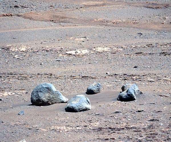Being on top of the fan, at one time in Mars' history there were rivers flowing across this area that built the fan itself. While these rivers carried the sediment for the fan, they were also carrying larger boulders that were deposited earlier than the delta sediments. The boulders we are looking at on top of the delta were carried here by water and were deposited when the water slowed down. Likely, many of the boulders in the field interacted with water at some point in Mars' history, making them important targets for assessing Mars' fluvial history and potential past habitability.