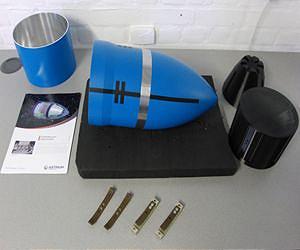 The penetrators Each penetrator has a mass of 20 kg and measures 400 mm long and 200 mm wide. A hollow cylindrical section about 200 mm long is added to the rear to add aerodynamic support. The outer shell is made from steel and the inner bays from aluminium to contain the payload. This optimises the strength/weight ratio of the penetrator such that the outer steel shell offers protection from the initial impact, while aluminium is sufficient for internal protection. A spring mechanism isolates the payload components from the outer skin in order to maintain a vacuum gap to provide thermal insulation - a critical component for maintaining battery and instrument lifetime in cold conditions. For the purpose of July's tests the payload comprised a non-operational sampling mechanism that would be used to retrieve samples of rock or ice for analysis inside the penetrator. In a full-scale mission the sampling mechanism would be capable of retrieving several samples of a few grams each, up to a distance of 10-20 cm from the outside wall of the penetrator. Accelerometers and a data logging system were activated to monitor the accelerations experienced by the penetrator as it impacted and travelled into the targets. During the firing test, each penetrator was accelerated along a 300 m stretch of the 1.5 km rocket sled track under the power of 12 solid rocket boosters to an impact speed of over 300 m/s. The duration of the test, from firing to impact, took about 1.5 seconds. The penetrators experienced a deceleration of 24 000 g. In both the ice and sand tests the target materials were enclosed by concrete blocks and steel girders to contain the impact hazard zone.