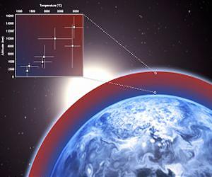 Studying the atmosphere of an exoplanet, Swiss astronomers derived a temperature profile with unprecedented precision. Their results are based on data collected with a relatively small ground-based telescope. This opens completely new perspectives for the characterization of remote exoplanetary atmospheres. It is several thousand degrees hot, high up in the atmosphere of the exoplanet named HD 189733b, a gas-giant located 63 light-years away from Earth in the constellation Vulpecula (the "little fox"). The temperature is increasing with altitude and reaches more than 3,000 degrees Celsius, enough to melt iron and much in excess of the planet's equilibrium temperature. "This is a sign that heating takes place at high altitudes in the planetary atmosphere," explains Aurelien Wyttenbach, a PhD student at Geneva Observatory. Besides deriving a temperature profile of the planetary atmosphere the Geneva team found tantalizing evidence of high-altitude winds blowing from the exoplanet's hot day side to the cold night side with speeds of several kilometers per second - "also an unprecedented detection," adds Wyttenbach. The results, based on observations with a ground-based telescope in Chile, are supported by a theoretical study by Kevin Heng, a professor and astrophysicist at the University of Bern, who is coining new diagnostics for planetary atmospheres. These two studies are the outcome of a collaboration between the Universities of Geneva and Bern under a Swiss-wide framework for planetary and exoplanetary science known as "PlanetS." The observational as well as the theoretical study are both based on the analysis of sodium gas in the exoplanetary atmosphere. Astronomers realized long ago that sodium, if present in an atmosphere, would produce a very large signal that can be easily measured. Specifically, when the exoplanet passes in front of its star, an event known as a "transit," its effective size would vary noticeably as the color of starlight being recorded changes. Sodium absorbs yellow light most strongly, so the exoplanet would look larger than if it was seen in green or red light - how the strength of this absorption varies with the color of light is well established by quantum physics. This theoretical prediction was made in 2000, two years before the first detection of sodium in an exoplanetary atmosphere was achieved. Since this pioneering discovery, sodium has been detected in the atmospheres of several exoplanets, either using large ground-based telescopes (with 8- or 10-meter mirrors) or the Hubble Space Telescope. The Geneva team developed a novel technique for detecting atmospheric sodium in several exoplanets using a comparatively small telescope with a 3.6-meter mirror, located at the European Southern Observatory (ESO) in La Silla, Chile. Mounted to this telescope is the HARPS spectrograph, the exoplanet-hunting machine of Geneva Observatory. Until now, HARPS has been used to measure radial-velocity signals, which are the gravitational wobbles of the stars induced by their orbiting exoplanets. Geneva astronomers realized recently that the treasure trove of HARPS data may also be used to trawl for signals associated with the atmospheres of exoplanets. By carefully scrutinizing this large dataset, collected over many years, Aurelien Wyttenbach was able to reproduce the detection of atmospheric sodium in the exoplanet HD 189733b. Astonishingly, the ground-based HARPS data produced a detection equivalent to using the Hubble Space Telescope. David Ehrenreich, a staff researcher at Geneva Observatory, used a well-tested numerical model to calculate the temperatures implied by the data. Simultaneously, Kevin Heng developed an alternative way of analyzing the data. Instead of using a sophisticated computer model, Heng derived a set of simple formulae to translate the changing size of the exoplanet into temperatures, densities and pressures within its atmosphere. The formulae produced temperatures that agree with the more sophisticated analysis and improve upon previous work stretching back almost a decade. "Previous formulae assumed the atmosphere to have only a single temperature, but we know that this is probably too simplistic even for faraway exoplanets for which we have limited information," explains Heng. "Our motivation was to derive new and simple formulae that took into account the changing temperatures and were specifically designed to interpret sodium lines. Their simplicity allow the formulae to be easily applied, so that one may obtain a quick and relatively robust answer without crunching numbers in a computer. Sometimes, simple is better." Used in tandem, the formulae and computer model may be used to check if the properties of the exoplanetary atmosphere being inferred are robust. These studies are timely, because the successors to the HARPS spectrograph are expected to perform at an even higher level. For example, the ESPRESSO spectrograph, currently under development at Geneva Observatory, is expected to operate at a sensitivity that is 5 to 10 times better than HARPS, and the future HiReS spectrograph on the 39-m E-ELT will open completely new perspectives orders of magnitudes above HARPS and even ESPRESSO. With the next generation of instruments and telescopes coming online in the next decade, the observational and theoretical techniques discovered by these two studies will be useful to other astronomers around the world seeking to explore and study the atmospheres of other exoplanets.