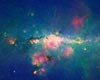 Like looking for Easter eggs in a lawn of long grass, the hunt for the Milky Way's most massive stars takes persistence and sharp eyes. In their stellar search through our Galactic backyard, astronomers have used powerful telescopes sensitive to X-ray and infrared radiation to find evidence for a substantial population of X-ray emitting massive stars. This image shows infrared data from NASA's Spitzer Space Telescope near the plane of the Milky Way galaxy. Both outlined boxes contain an artificially darkened view of the Spitzer data, to highlight a bright X-ray source (blue) detected at the center of each square with NASA's Chandra X-ray Observatory. Each X-ray source coincides with a strong infrared signal. Analysis of the X-ray and infrared data, as well as optical and radio observations, reveals that these bright sources are, in fact, extremely massive stars. Two other massive stars have also been found near the plane of the Milky Way using similar methods. Deep observations from ESA's XMM-Newton also provided valuable information for these other two objects. All four of these stars are thought to be at least 25 times more massive than the Sun and lie between 7,500 and 18,000 light years from Earth. These stars are expected to last only a few million years and will end their lives with supernova explosions. Finding these very massive stars is not easy. Dust and gas throughout the Milky Way obscures much of the view from optical telescopes near the plane of the galaxy. Infrared images suffer less obscuration but are extremely crowded with stars. However, these stellar behemoths shine brightly in X-ray light and easily stand out from their neighbors in Chandra images. Why are these massive stars so bright in X-rays? Some massive stars have winds that blow material away from their surface at over 2 million miles per hour. If this high-speed material collides with the wind from a companion star, it is decelerated so suddenly that acts like it has collided with a Solar System-sized brick wall. The shock waves resulting from this enormous collision generate temperatures up to 100 million degrees, and produce copious amounts of X-rays. These Chandra observations followed a survey of the plane of our Galaxy by the Advanced Satellite for Cosmology and Astrophysics (ASCA), a previous X-ray mission. This survey detected about 160 X-ray sources, but only a third of them could be definitively identified due to the limited spatial resolution of ASCA. Because Chandra's ability to resolve sources is significantly greater, much more precise positions could be obtained. This has allowed scientists to identify counterparts to the X-ray sources in other wavelengths. There are many other unidentified Galactic X-ray sources with X-ray properties similar to these four sources, so a large population of massive stars may remain to be discovered with future Chandra observations. These results were published in the February 1st issue of The Astrophysical Journal in a paper led by Gemma Anderson (University of Sydney). Other authors included Bryan Gaensler (University of Sydney), David Kaplan (University of Wisconsin, Milwaukee), Bettina Posselt, Patrick Slane and Stephen Murray (Harvard-Smithsonian Center for Astrophysics, or CfA), Jon Mauerhan (California Institute of Technology), Robert Benjamin (University of Wisconsin, Whitewater), Crystal Brogan (National Radio Astronomy Observatory), Deepto Chakrabarty (Massachusetts Institute of Technology), Jeremy Drake (CfA), Janet Drew (University of Hertfordshire), Jonathan Grindlay and Jaesub Hong (CfA), Joseph Lazio (Naval Research Laboratory), Julia Lee (CfA), Danny Steeghs (University of Warwick), and Marten van Kerkwijk (University of Toronto).